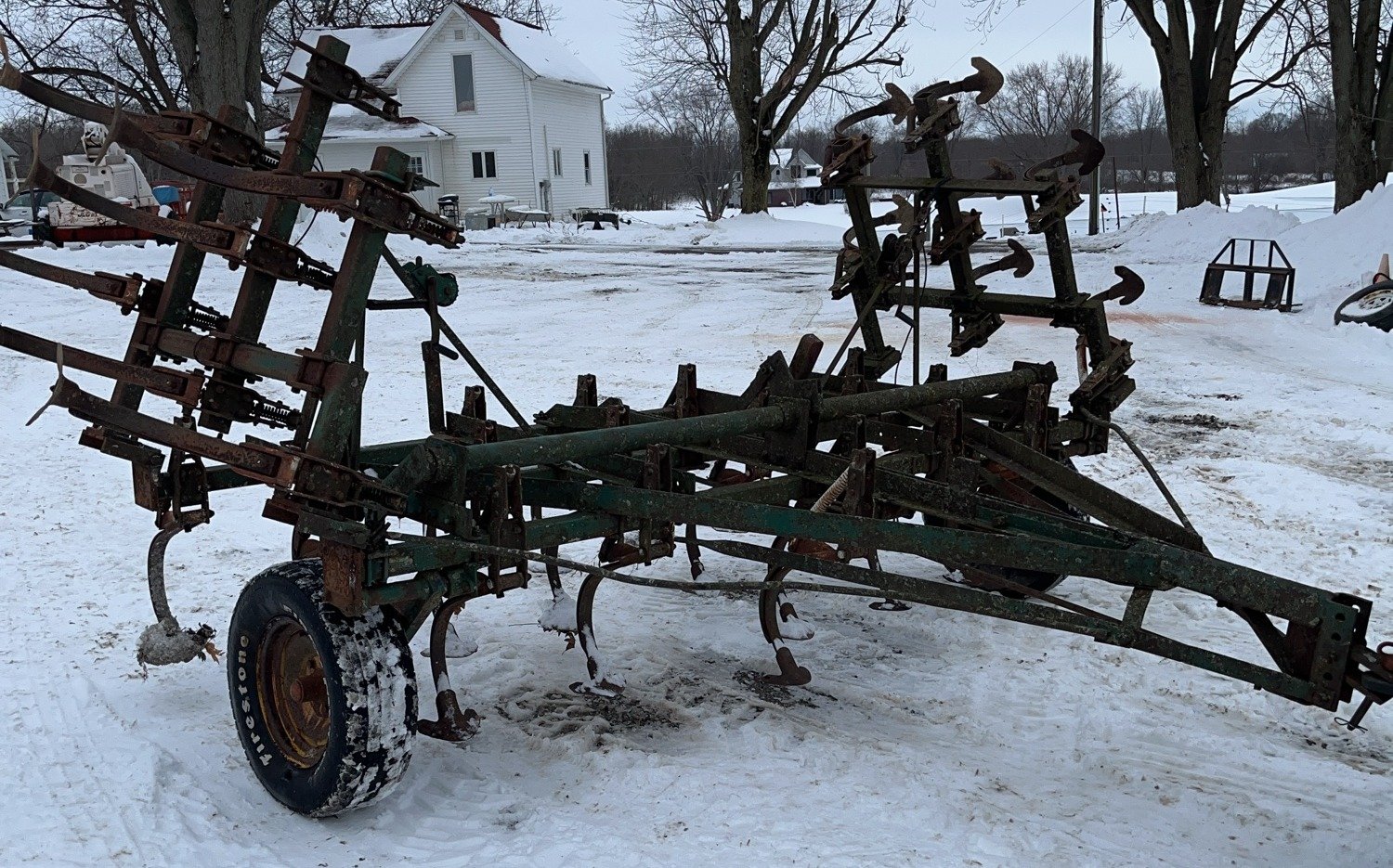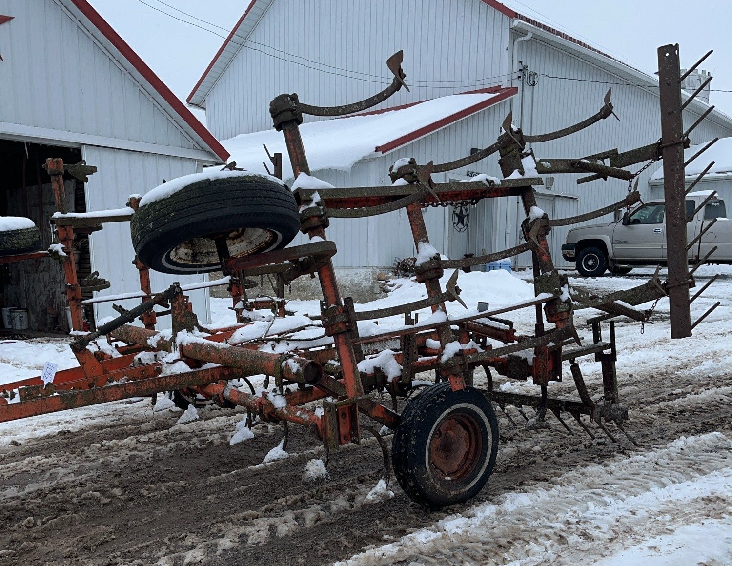 3871 Allis Chalmers 18ft field cultivator hyd fold wings with wheels, single bar drag