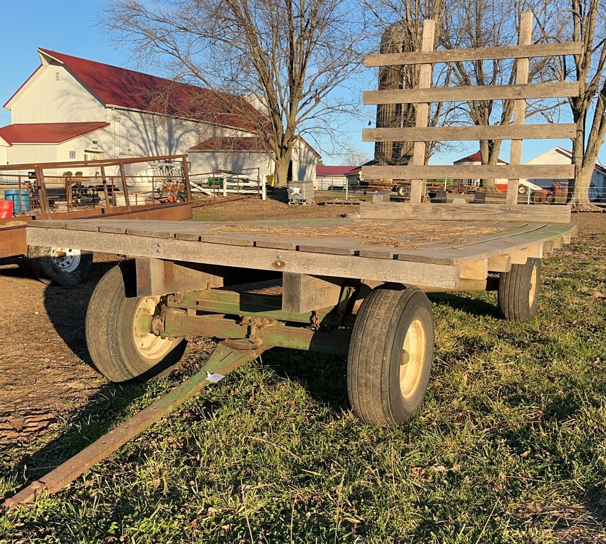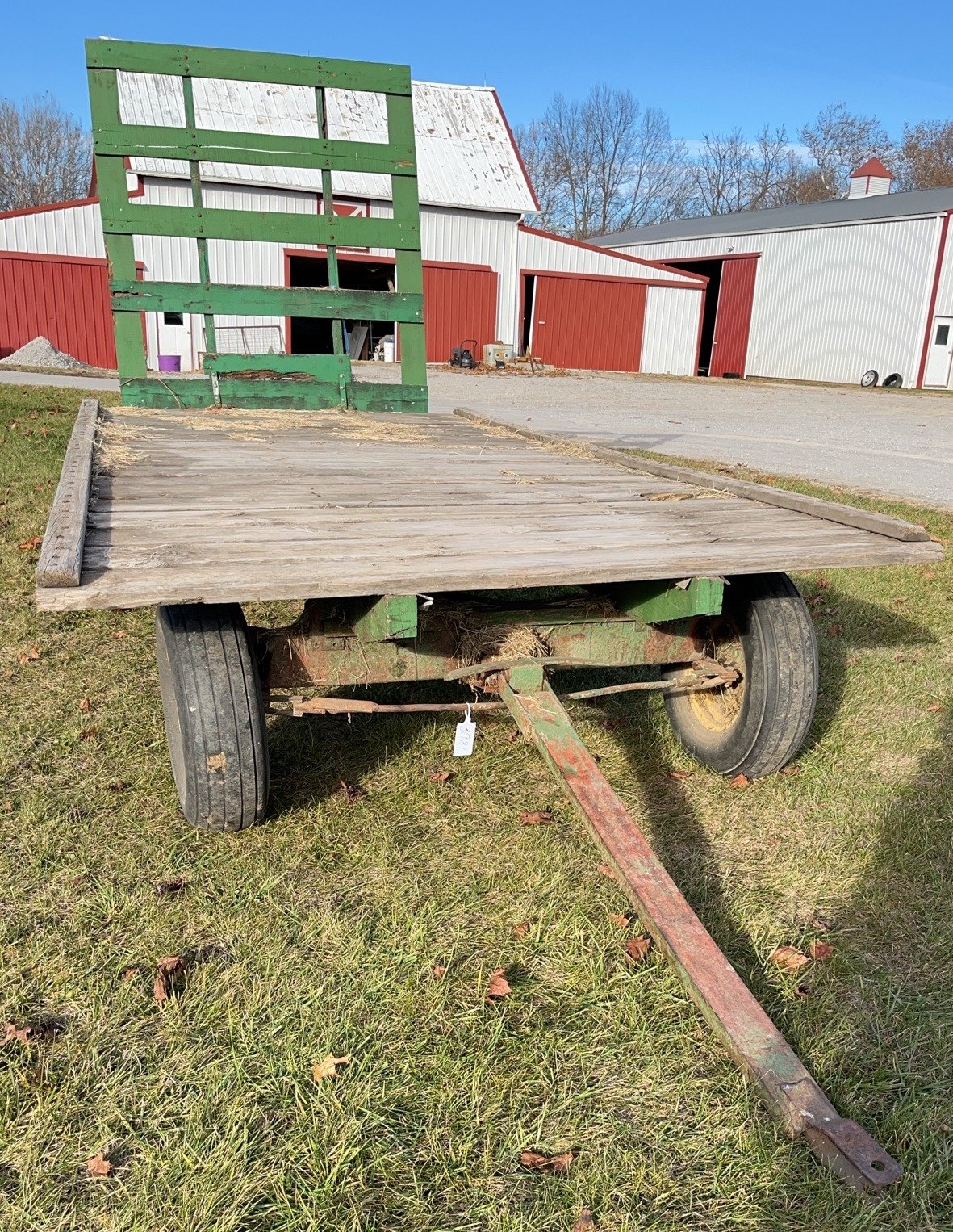 3971 8x16 oak hay wagon w/John Deere gear, trails good