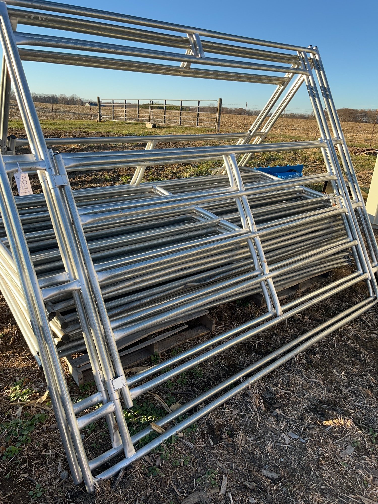 3973 New livestock corral, included 10 -9ft 8” panels and 2- swinging gates, fasteners included, sells bid x12