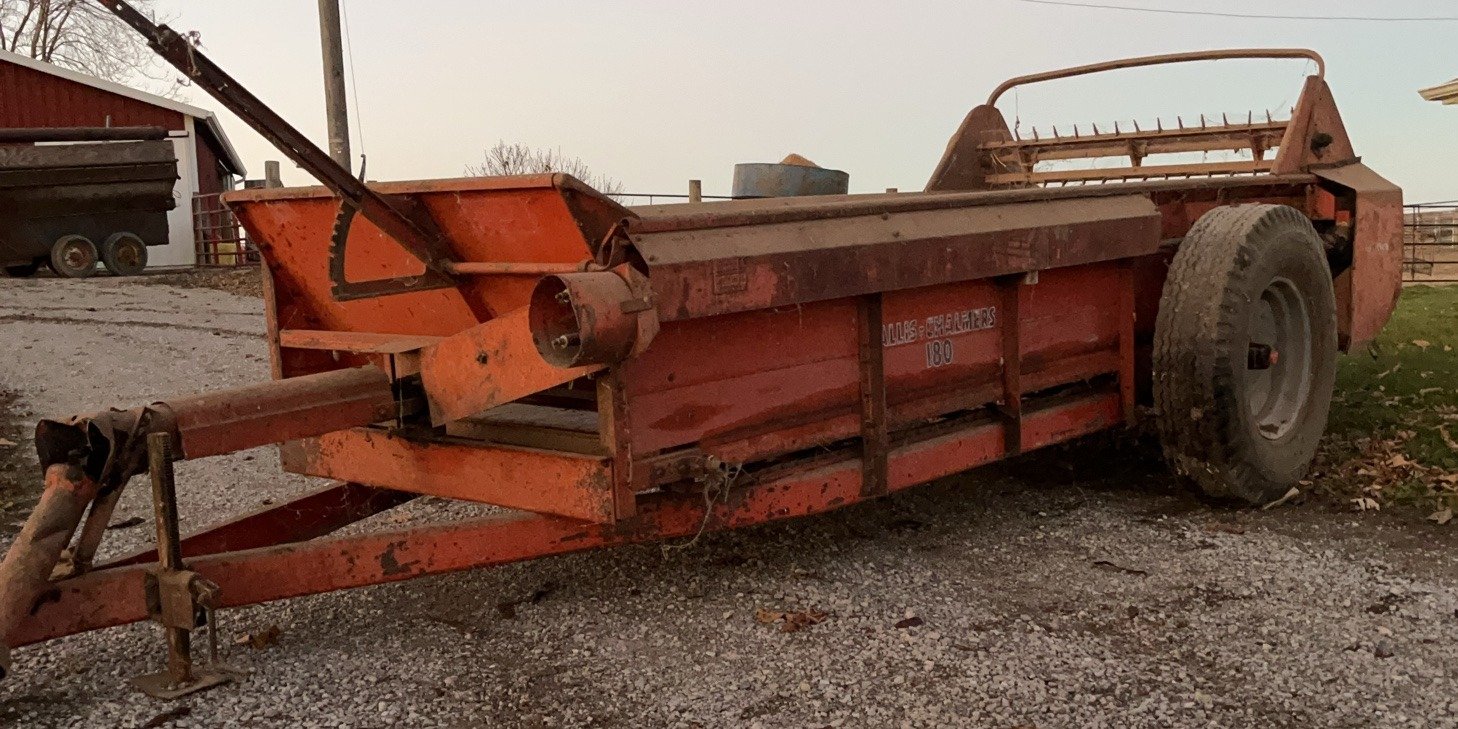 3976 Allis Chalmers 180 manure spreader, triple beater, original sales brochure and owners manual included, was purchased new and they only raised cattle a few years after , was stored in a bank barn on wood floor - absolutely one of a kind hard to find this nice!