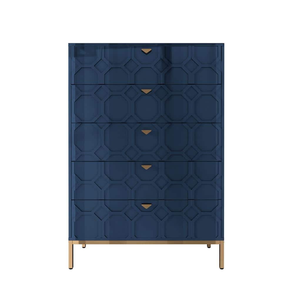 471011 332598962 - Blue 49.2 in. H 5-Drawers Accent Storage Cabinet with Adjustable Feet-Pads - PLEASE SEE PRODUCT DETAILS