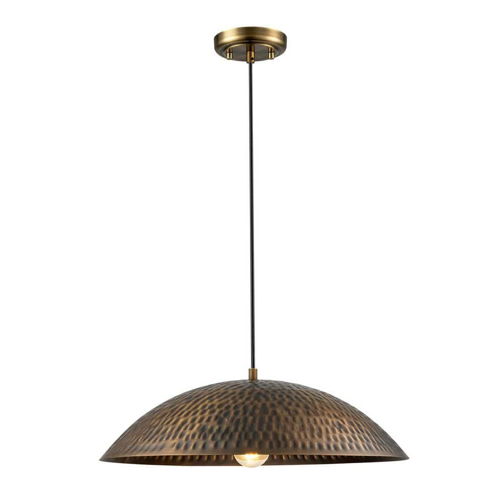 471020 - Johnnell 1-Light 19.69-in Industrial Antique Brass Dome Pendant Light