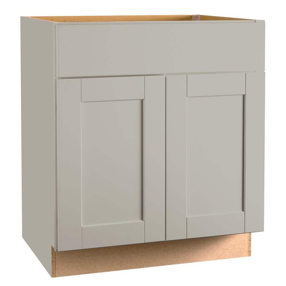 471031 HAMPTON BAY - Shaker 30 in. W x 24 in. D x 34.5 in. H Assembled Base Kitchen Cabinet in Dove Gray with Ball-Bearing Drawer Glides