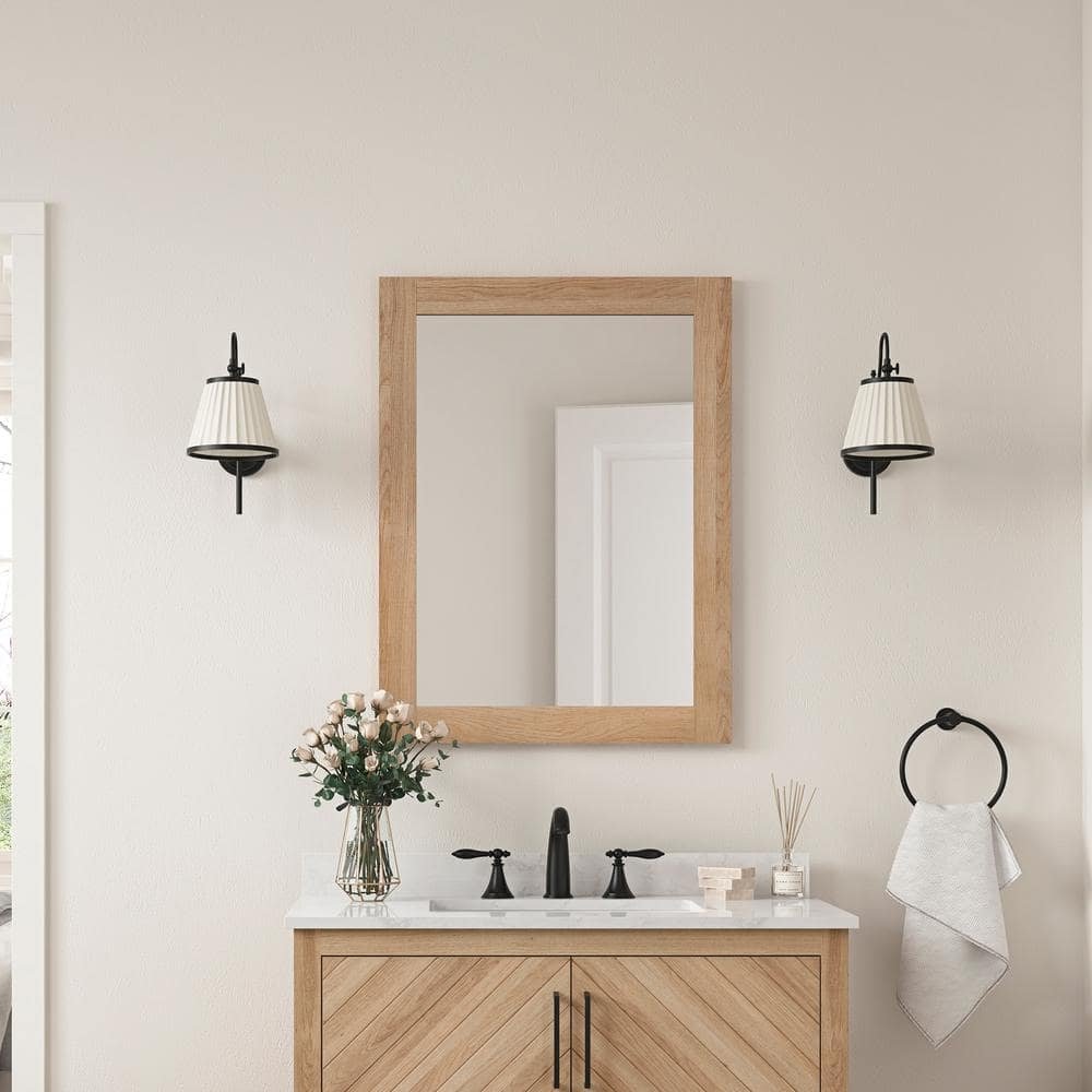 471039 GLACIER BAY - Huckleberry 24 in. W x 32 in. H Rectangular Framed Wall Mount Bathroom Vanity Mirror in Weathered Tan