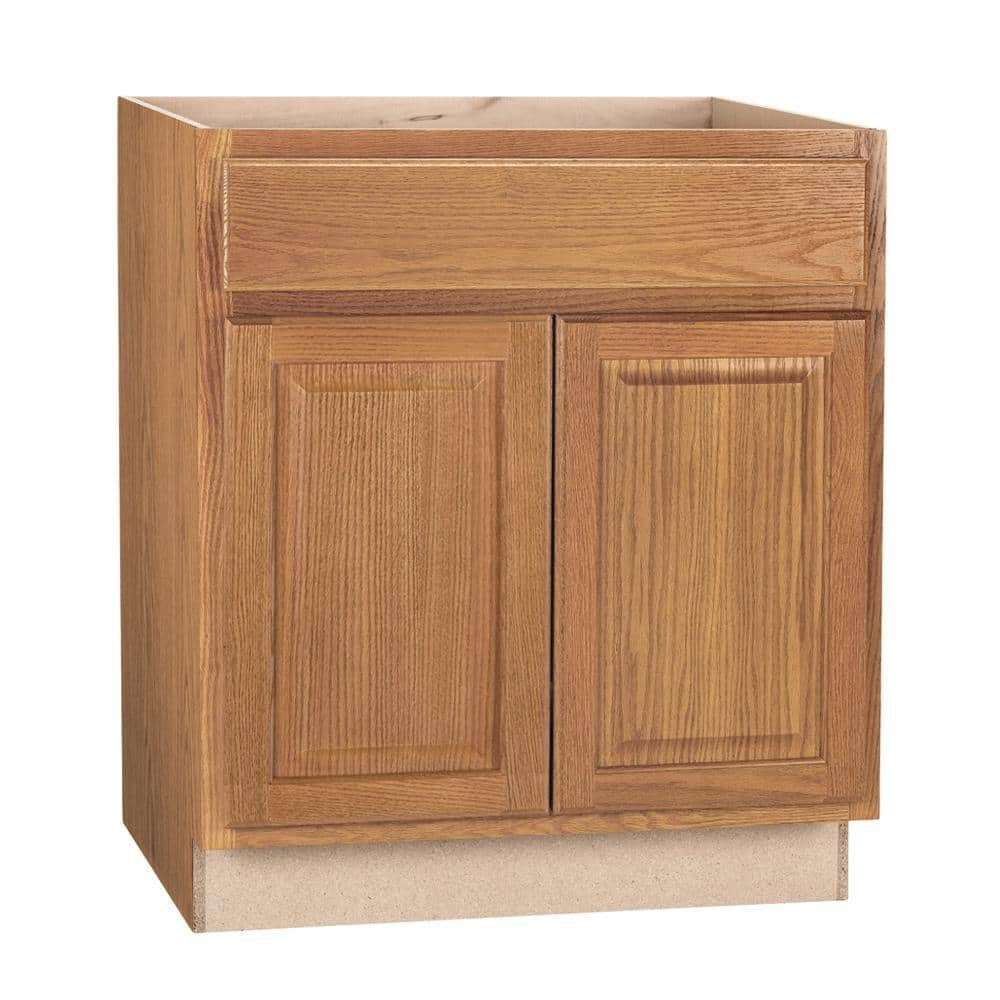 471040 HAMPTON - Hampton 30 in. W x 24 in. D x 34.5 in. H Assembled Base Kitchen Cabinet in Medium Oak with Drawer Glides