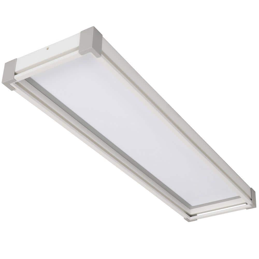 471070 COMMERCIAL ELECTRIC - Sebastian 48 in. x 13 in. Modern White Satin Nickel CCT Selectable LED Flush Mount Ceiling Light 4000 Dimmable Lumens