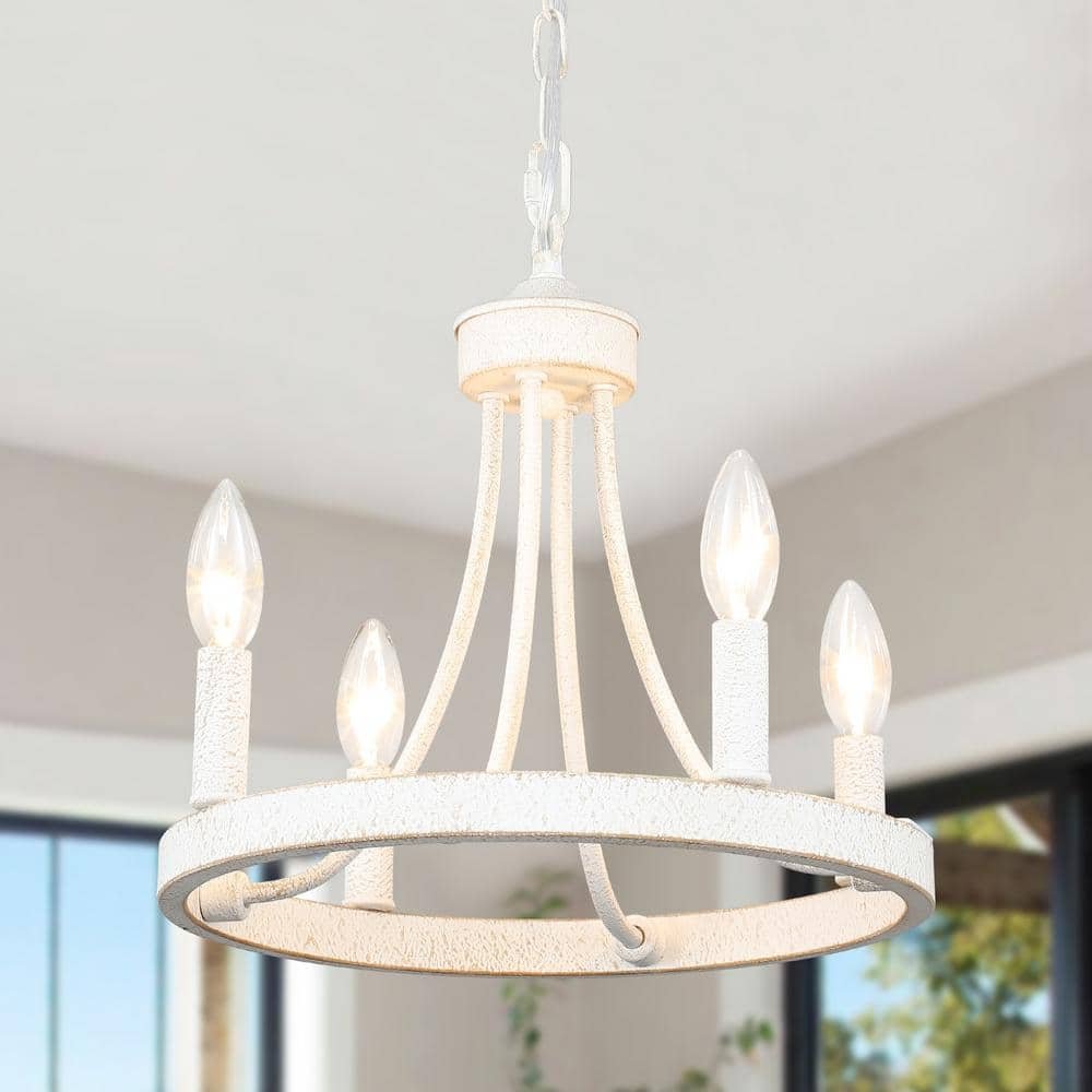 471078 LWYTJO - 4-Light 12.99 in. Rustic Retro White Wagon Wheel Chandelier for Living Room Kitchen Bedroom Study