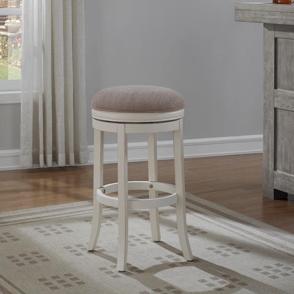 471079 AMERICAN WOODCRAFTERS - Aversa 30 in. Distressed Antique White Swivel Bar Stool