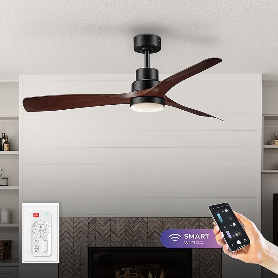 481042 - Globe Electric Nashville 52-in Color-Changing Smart Matte Black with Faux Wood Blades Ceiling Fan With Light 3 -Blade )
