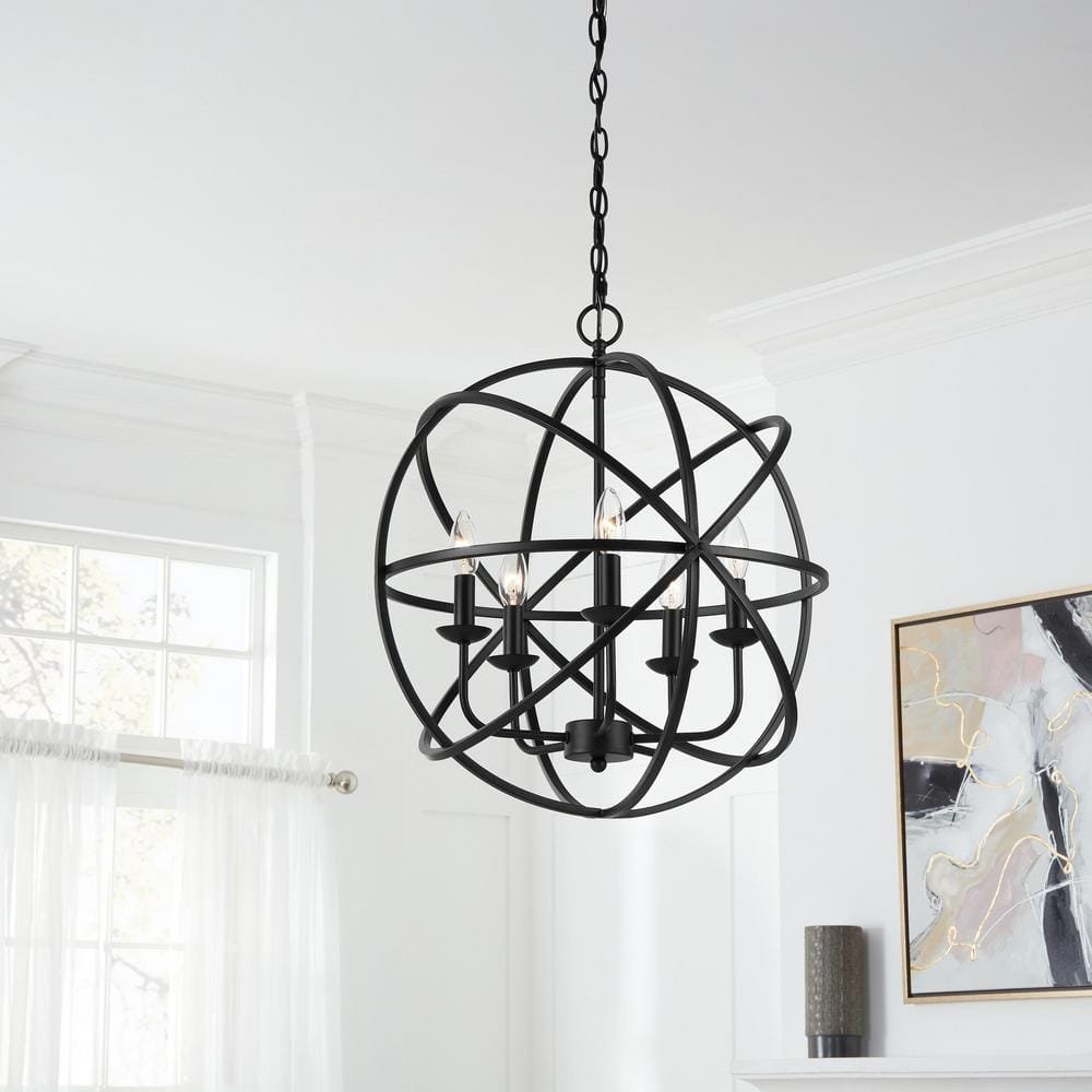 481051 HOME DECORATORS COLLECTION - Sarolta Sands 5-Light Black Chandelier Light Fixture with Caged Globe Metal Shade