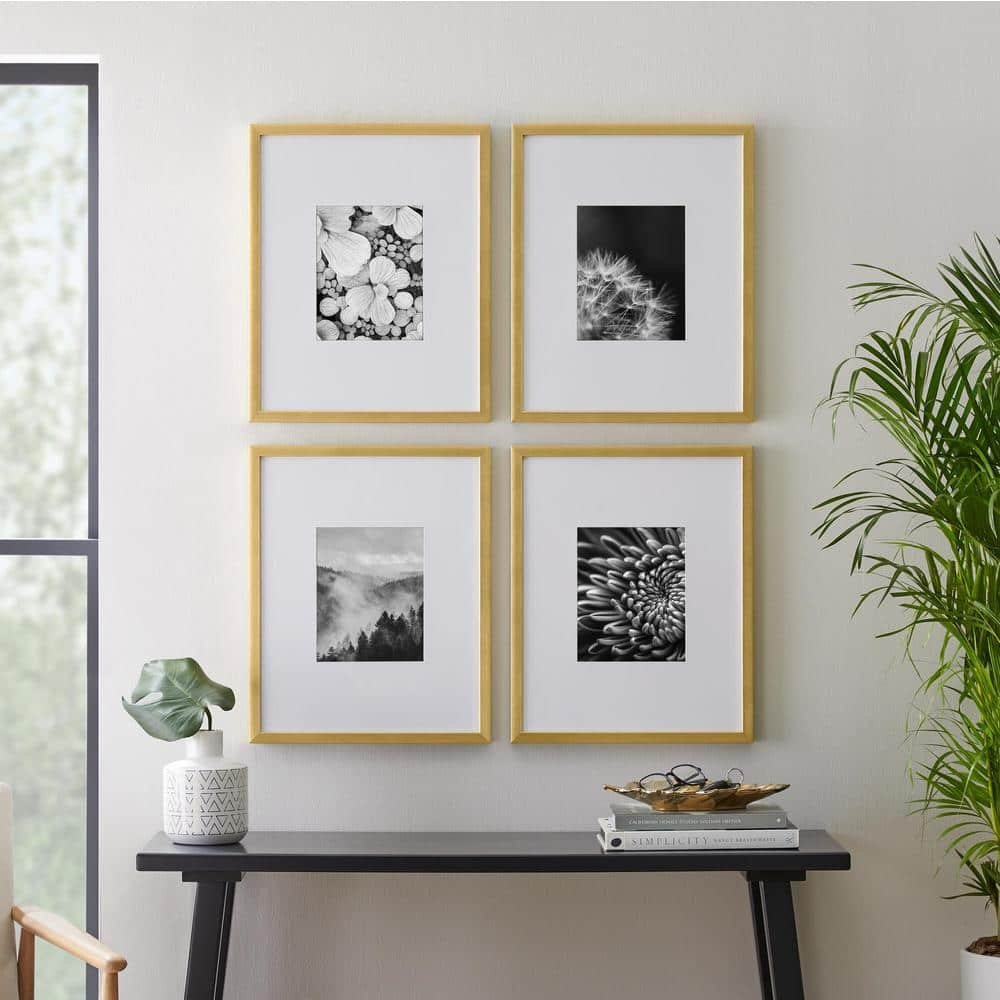 481080 STYLEWELL - 16 x 20 Matted to 8 x 10 Gold Gallery Wall Picture Frame (Set of 4), ONE FRAME IS BROKE - PLEASE SEE PRODUCT DETAILS