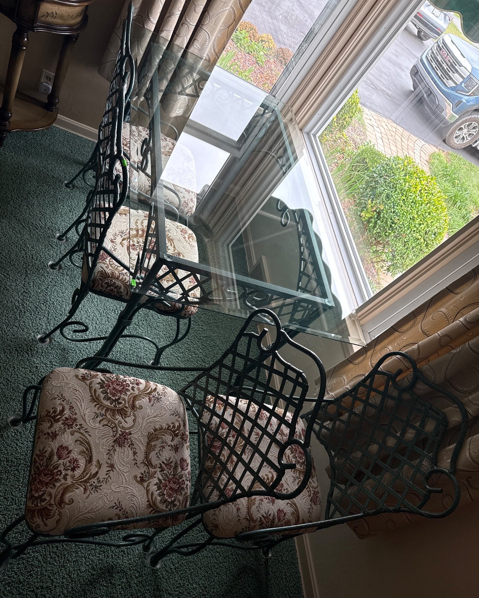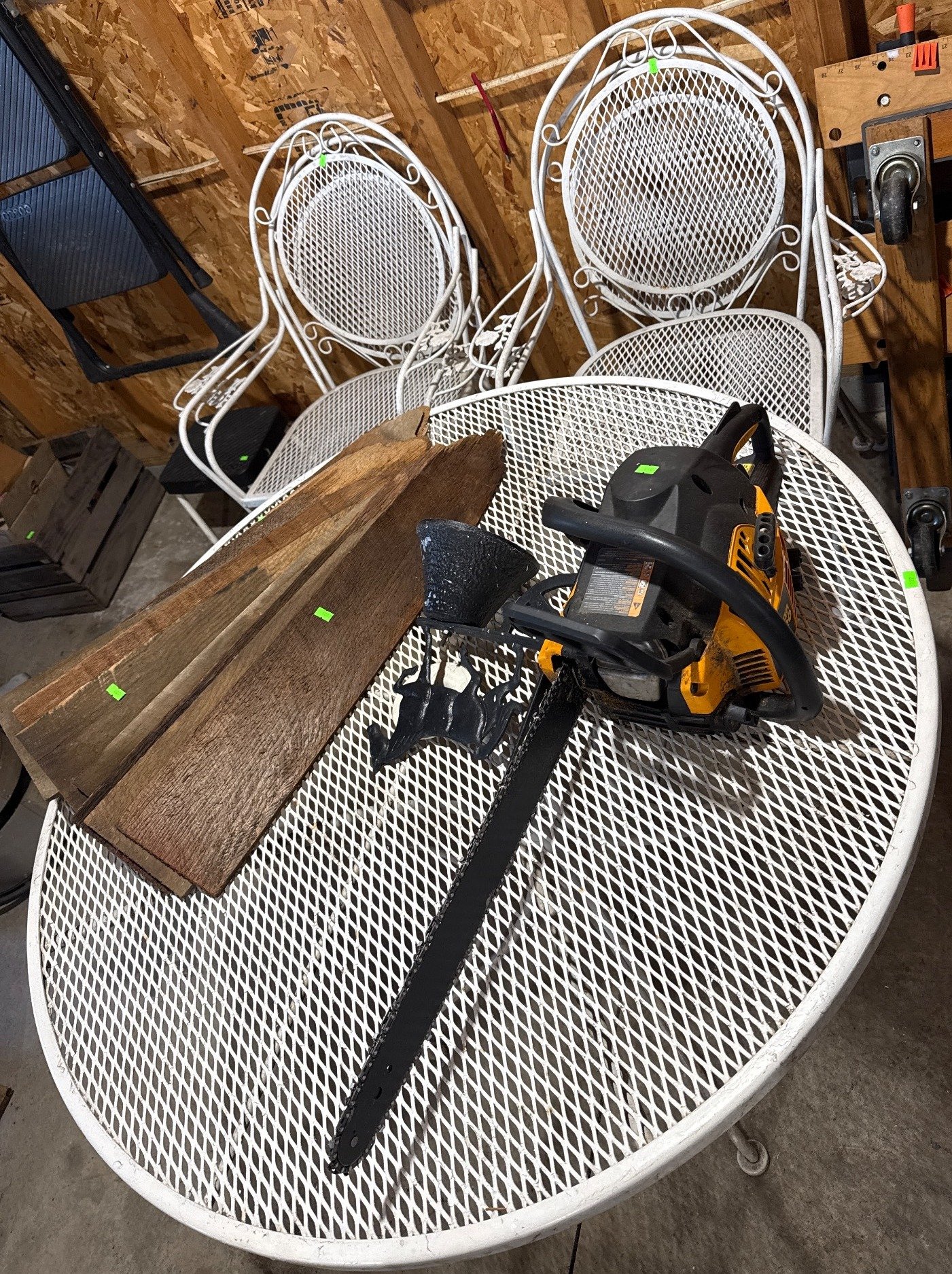 2022 White Metal Patio Table and 4 Chairs with Mesh Design (Table and Chairs Only)