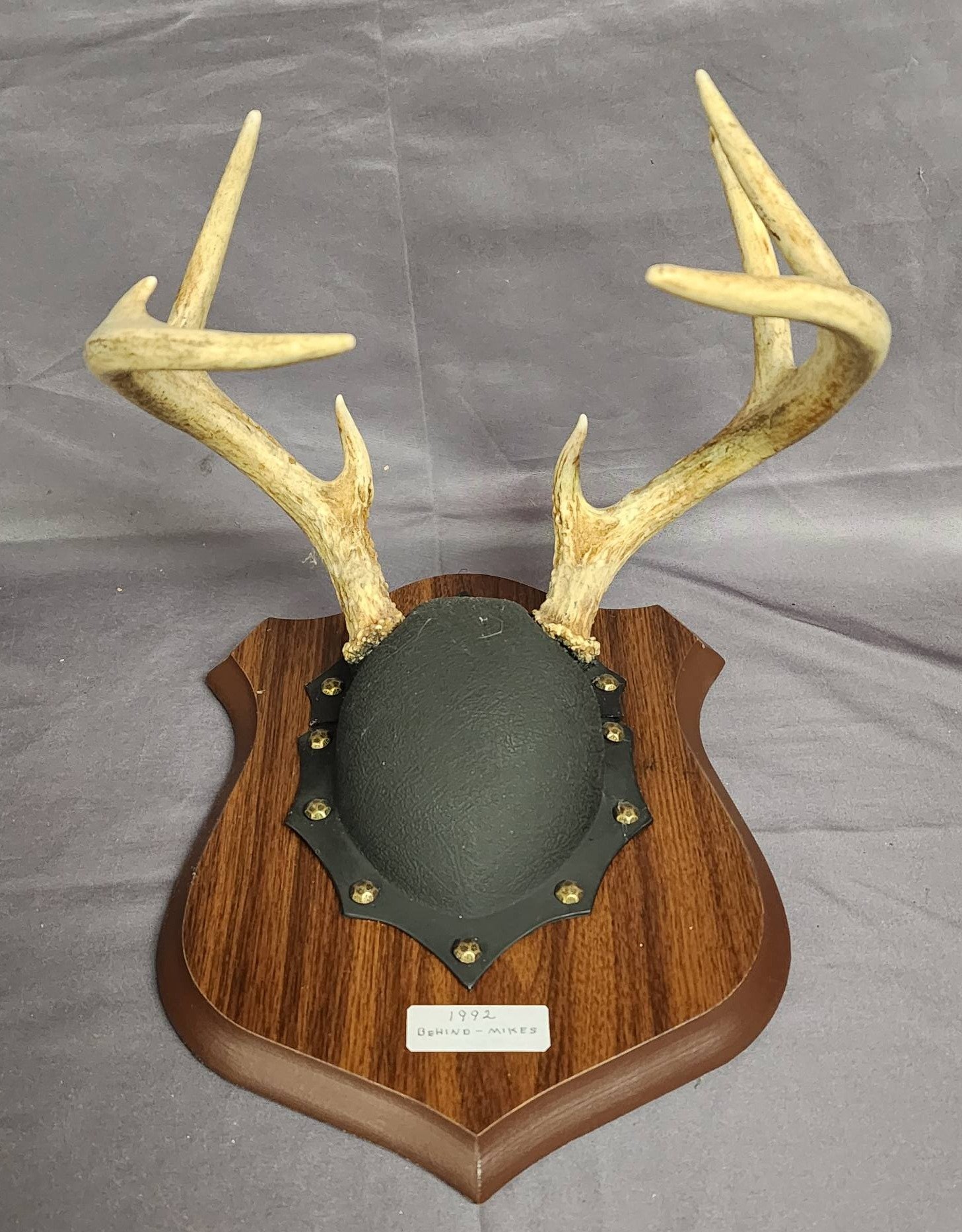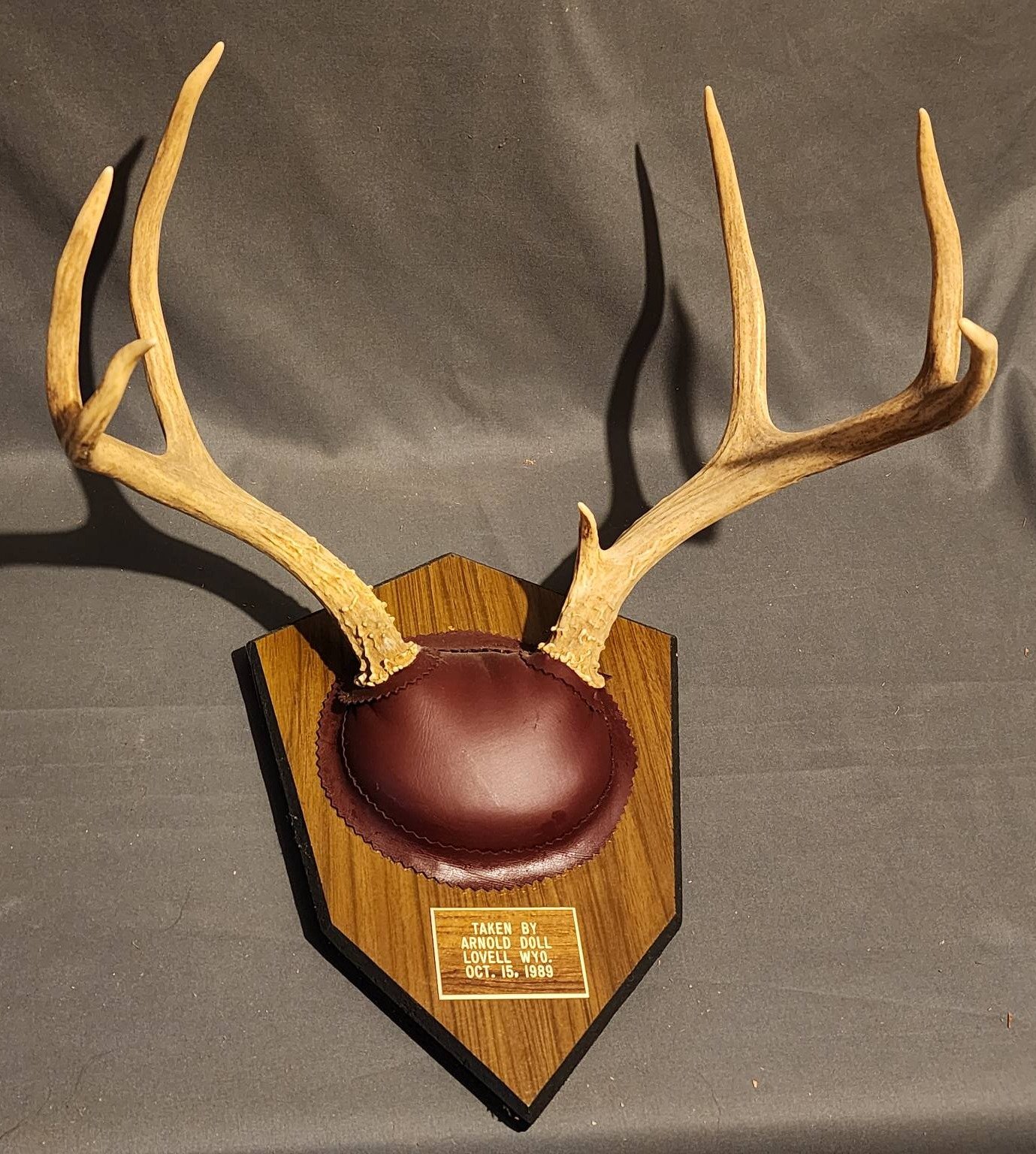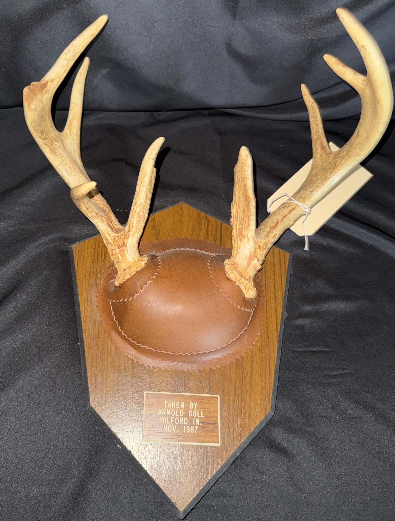 1870 Mounted Deer Antlers with Brown Leather Plaque Base