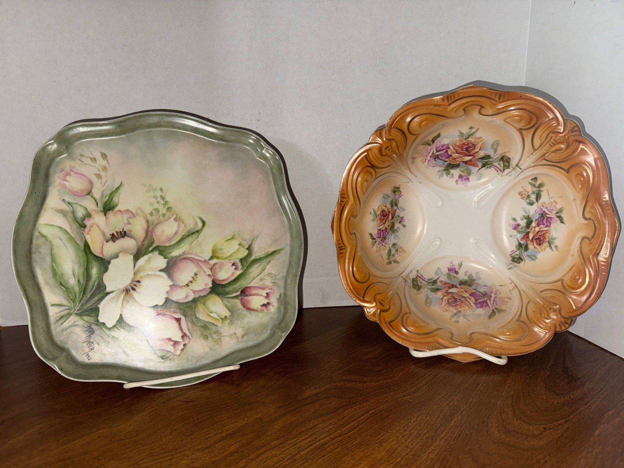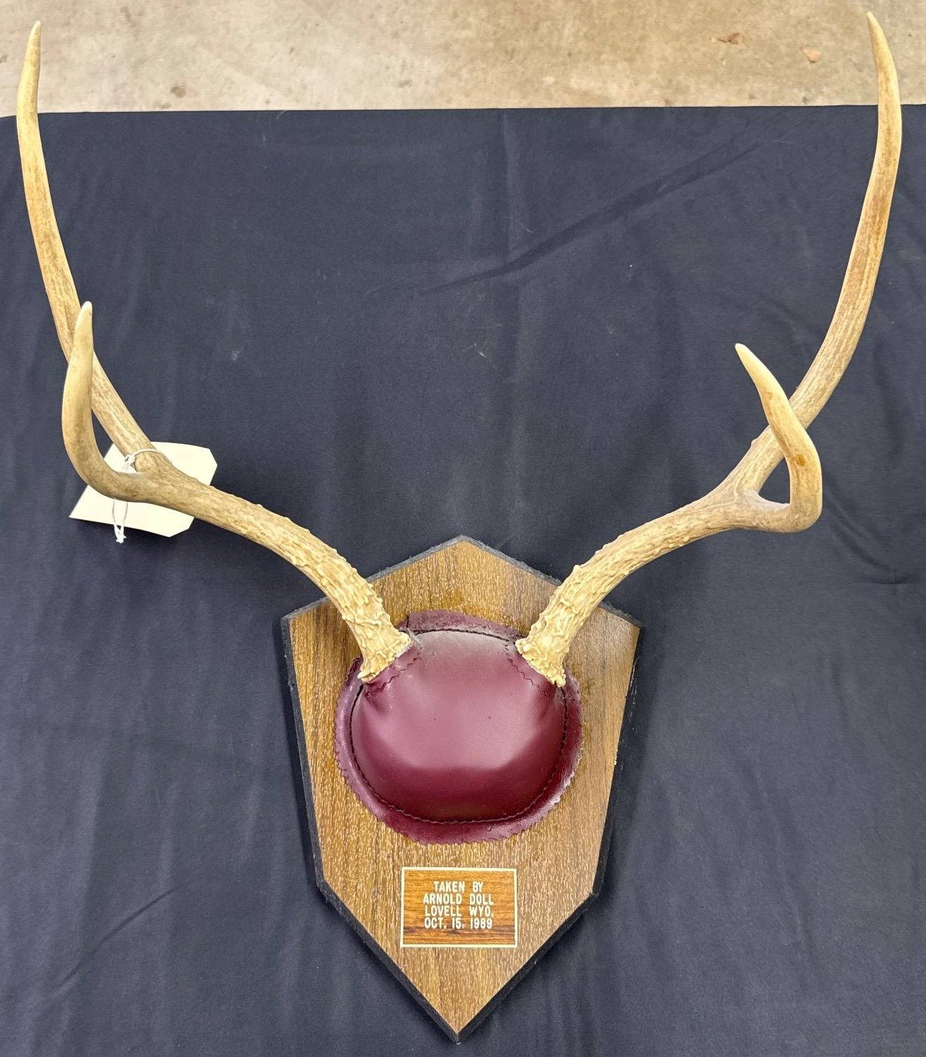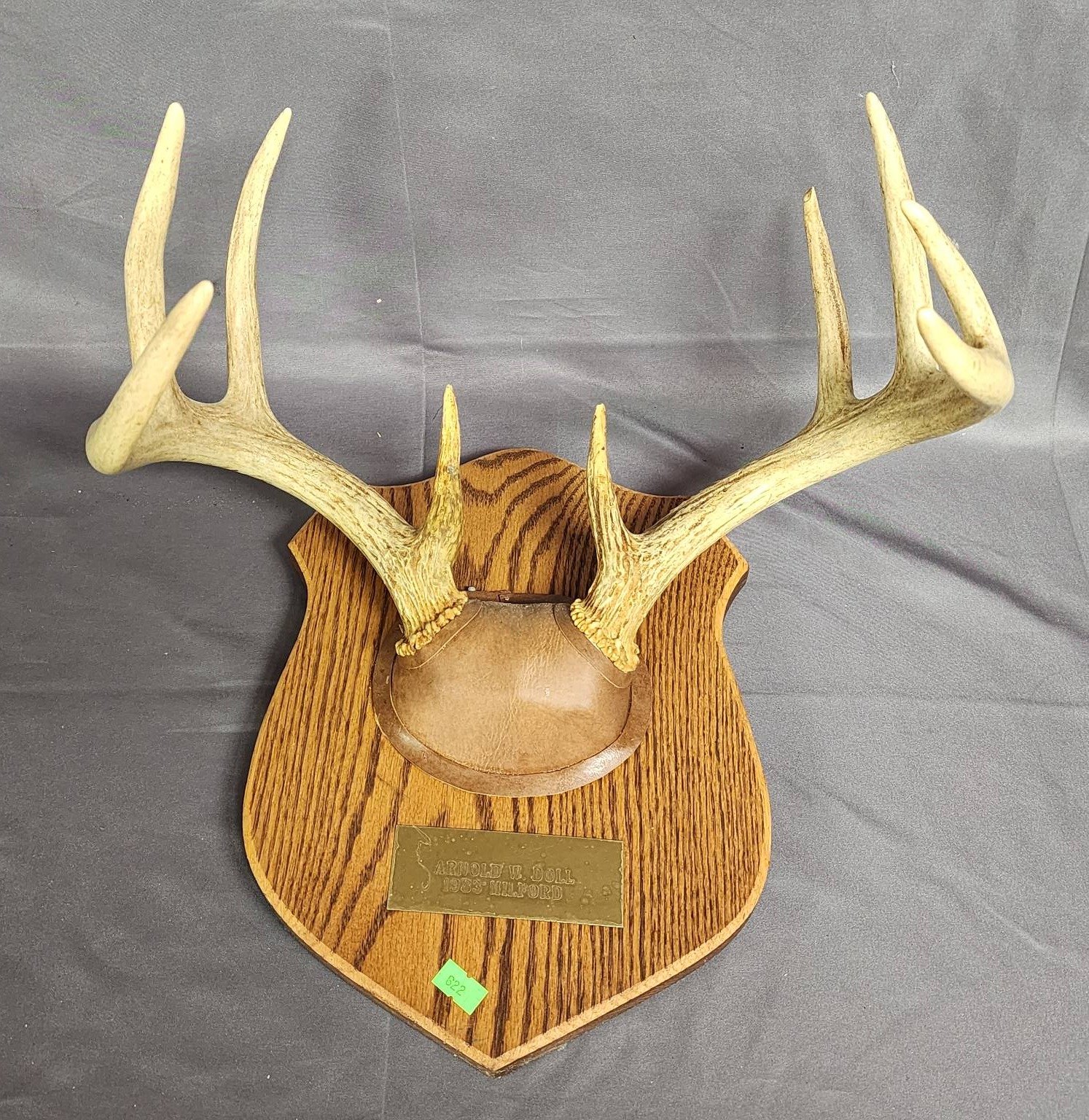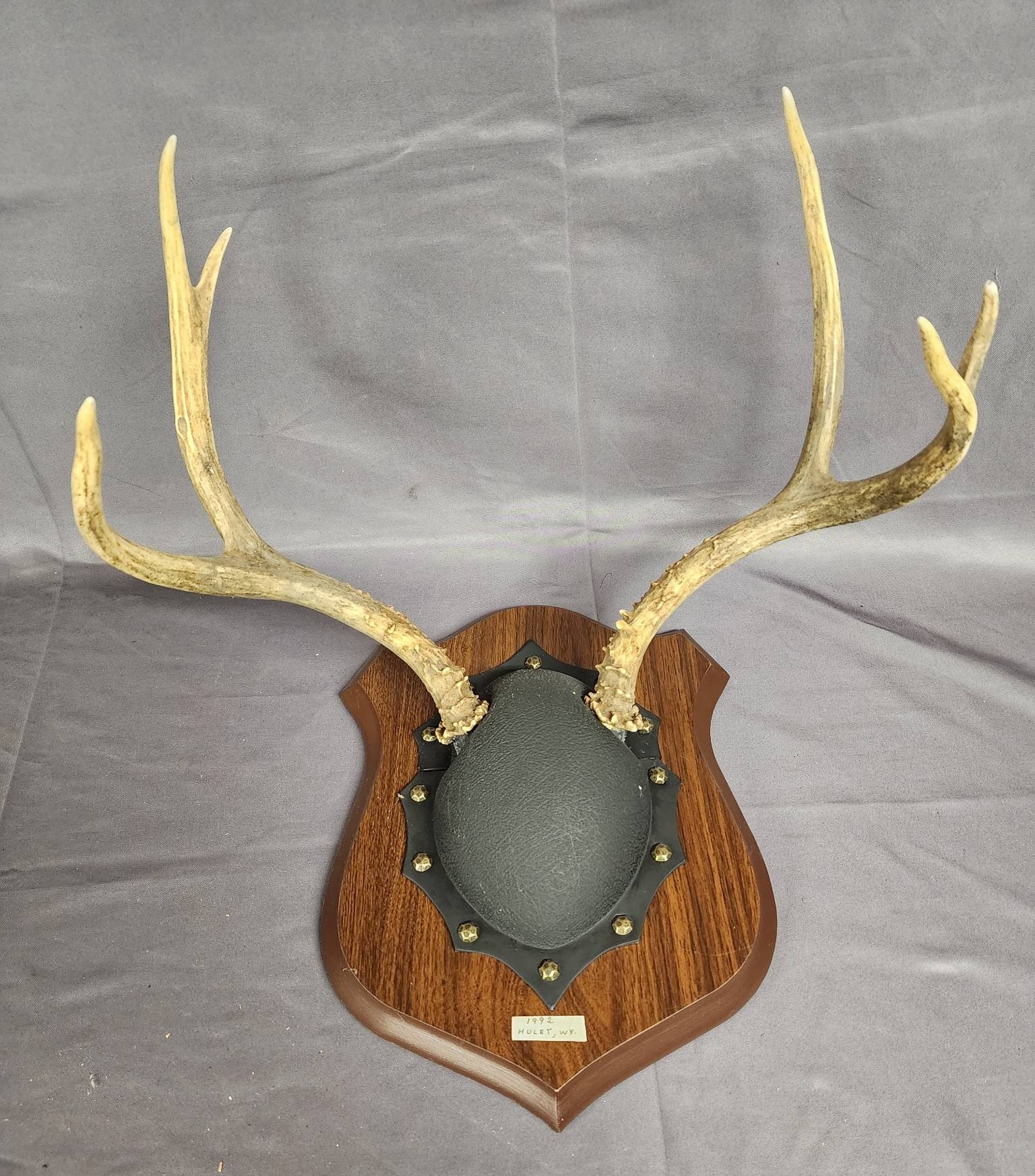 1870 Mounted Deer Antlers with Brown Leather Plaque Base