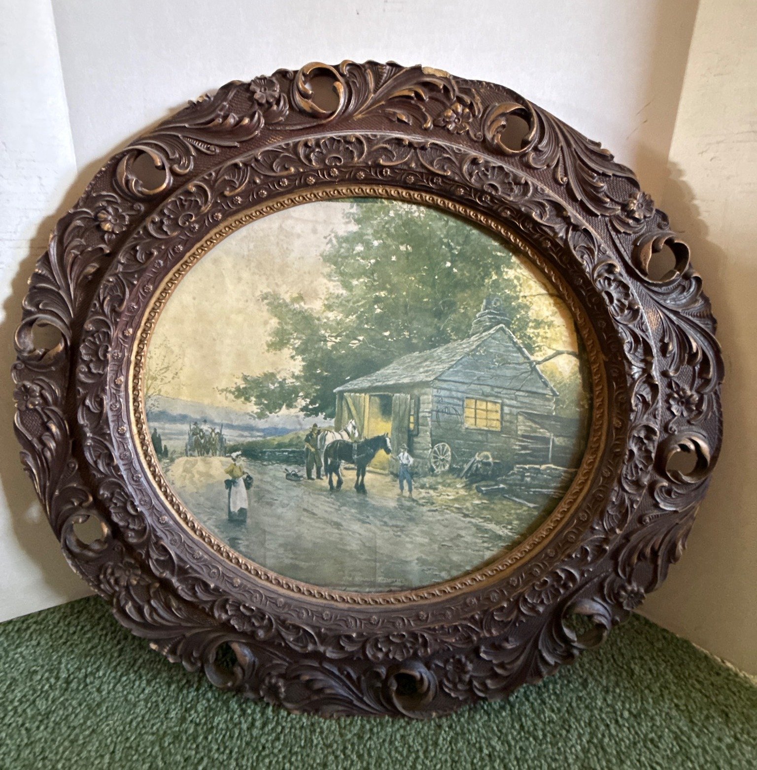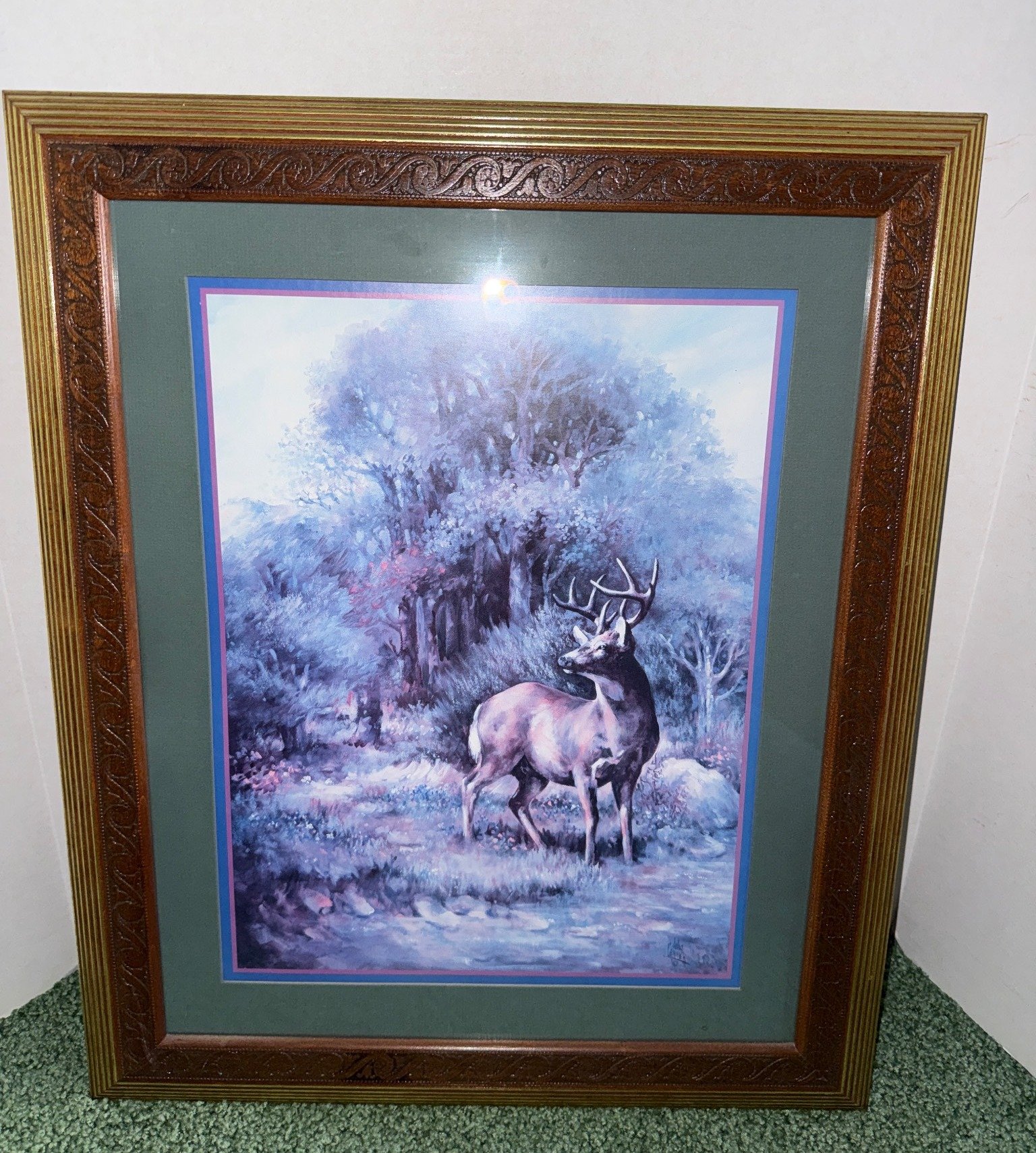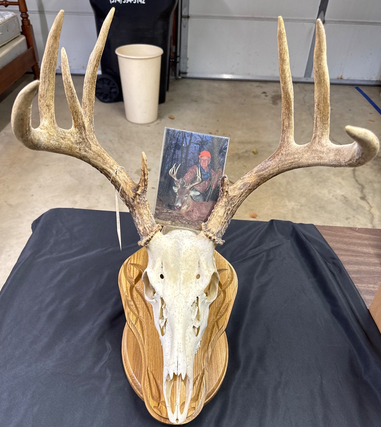 1851 Mounted Deer Skull with Antlers on Carved Display Plaque, 18?