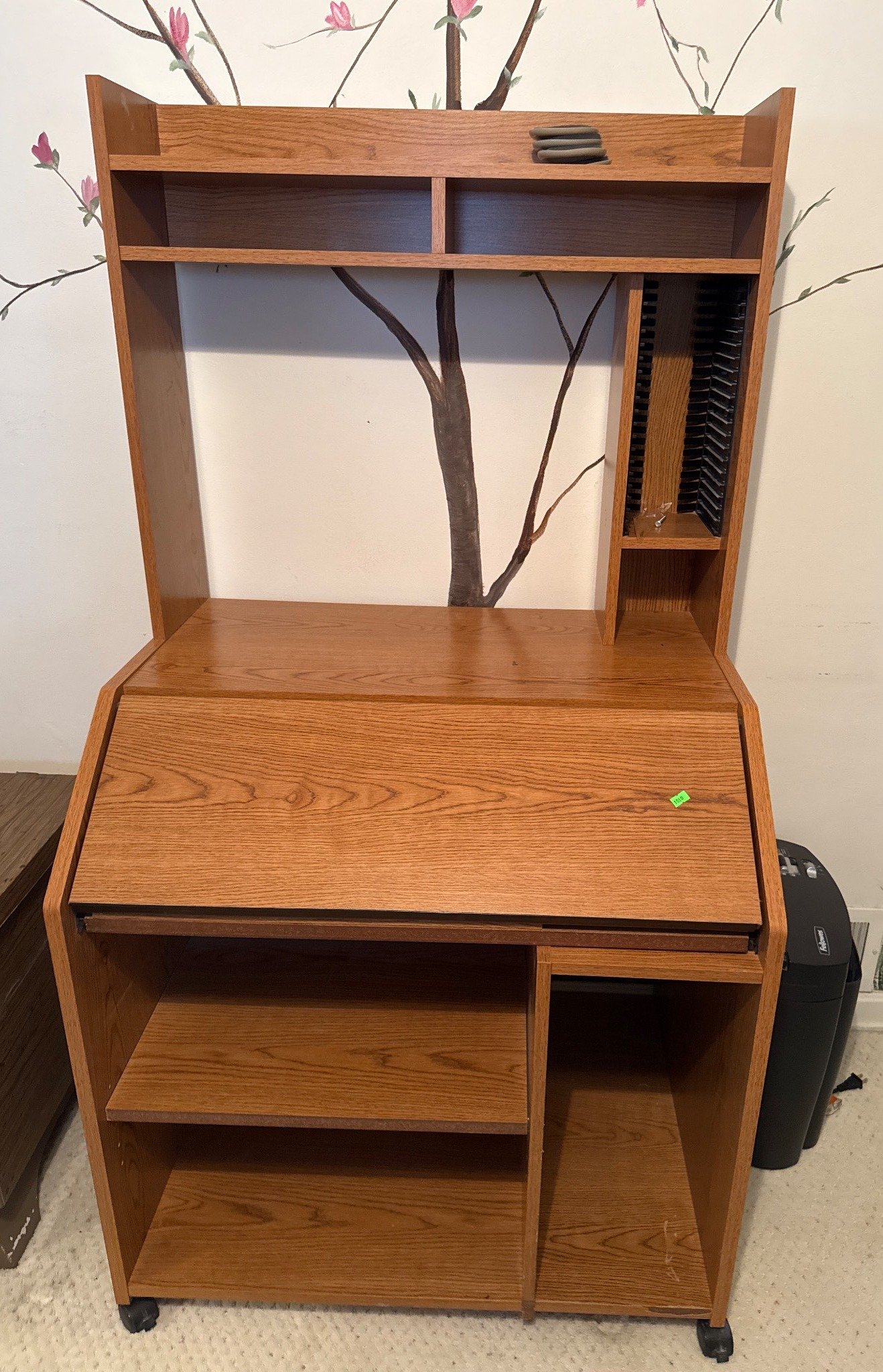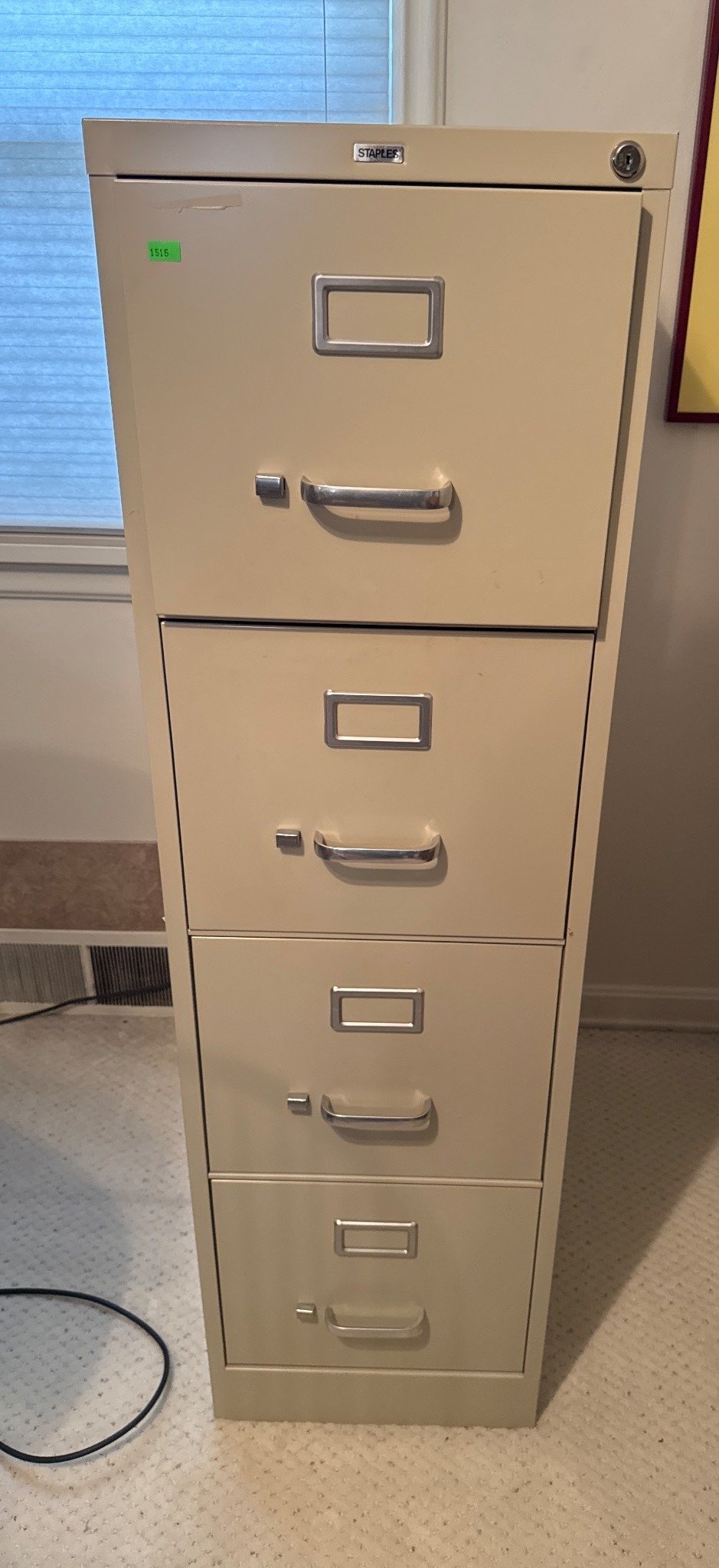 2004 Metal Storage Rack with Yellow Plastic Bins and Contents, 41.5x36x13?