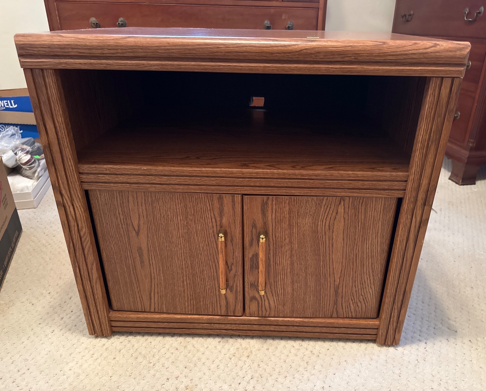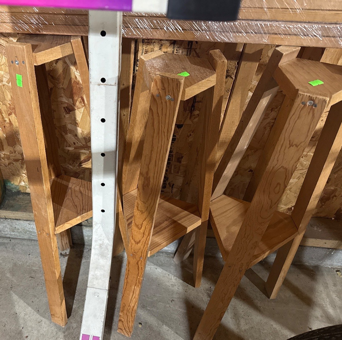2012 4 Triangular-Topped Stands with Oak Finish, 29.5”x6”