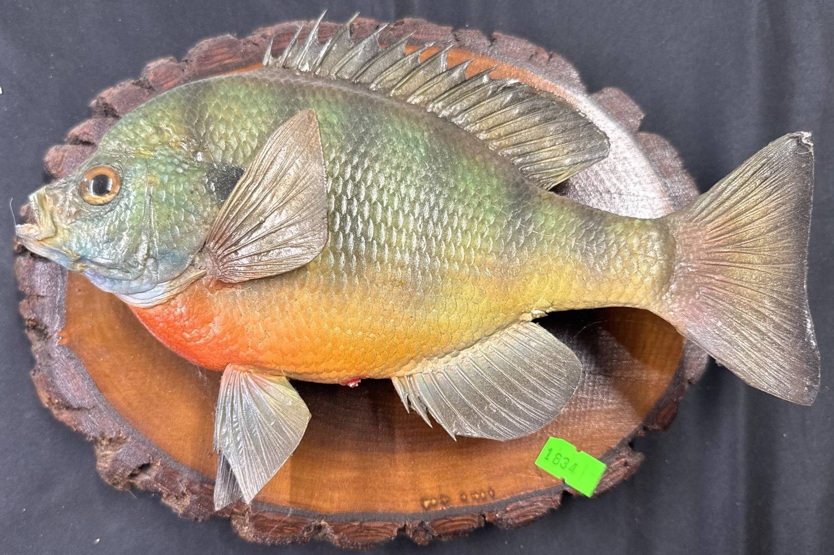 1834 Taxidermy Bluegill Mounted on Carved Wood Plaque, 11?