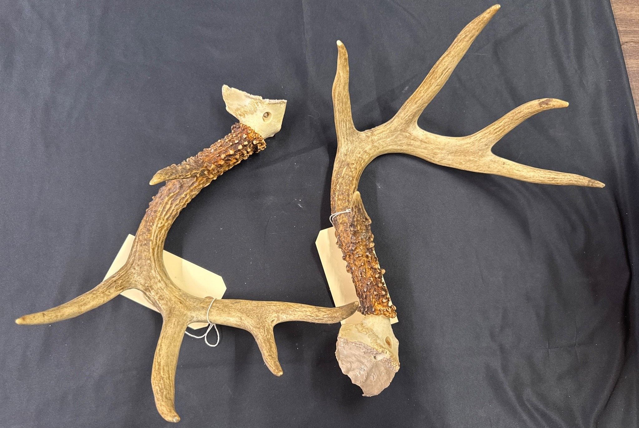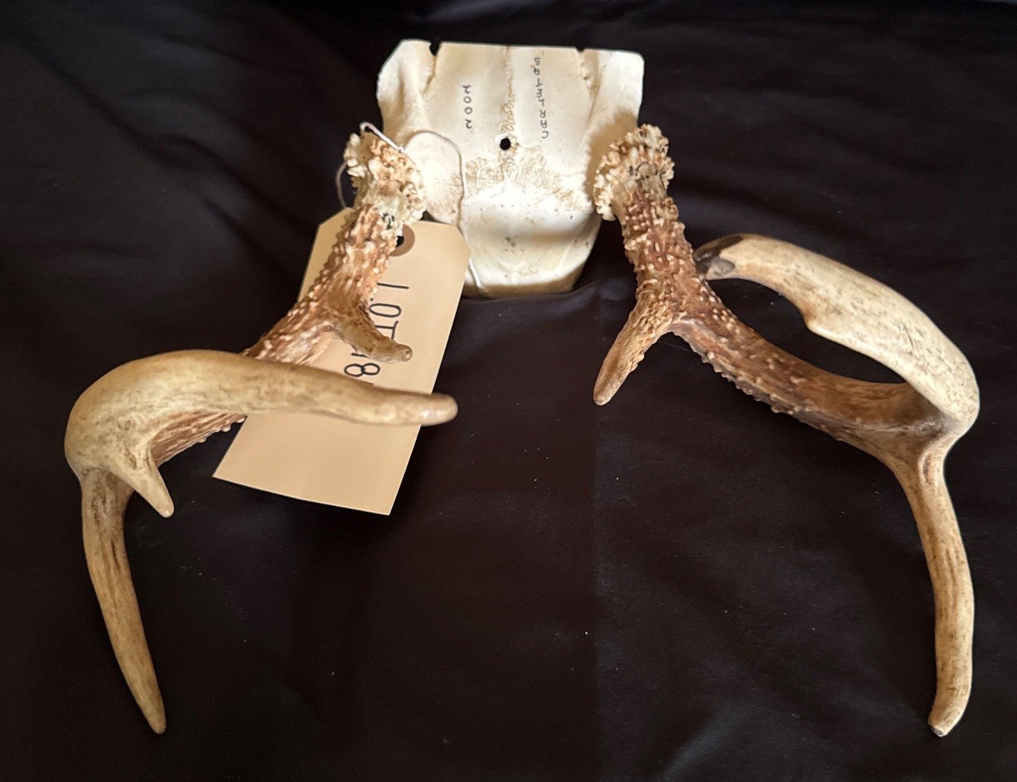 1853 2-Prong Deer Antler Pair with Skull Base