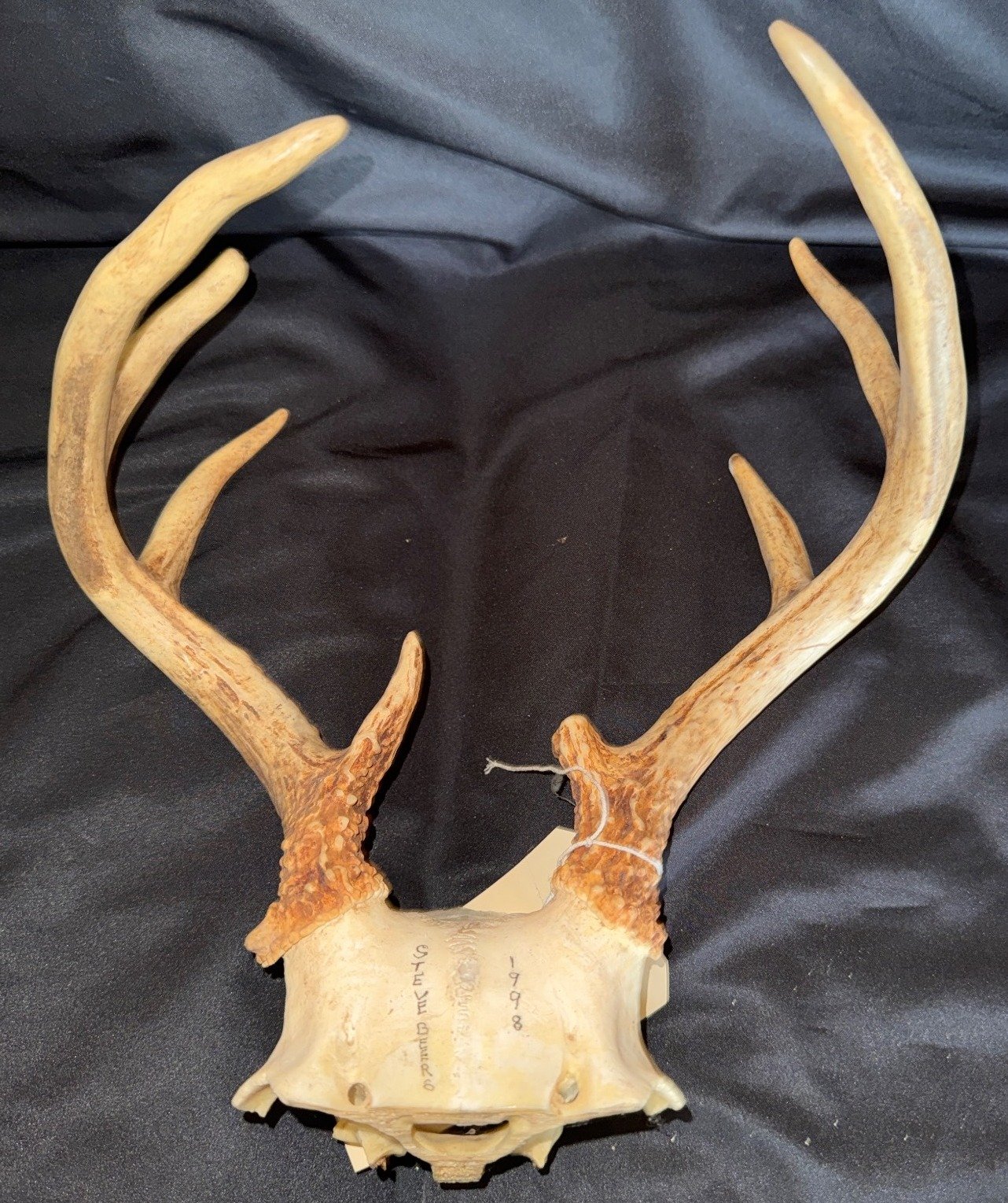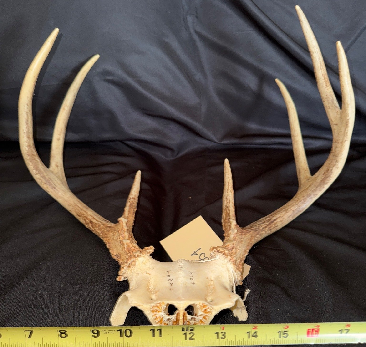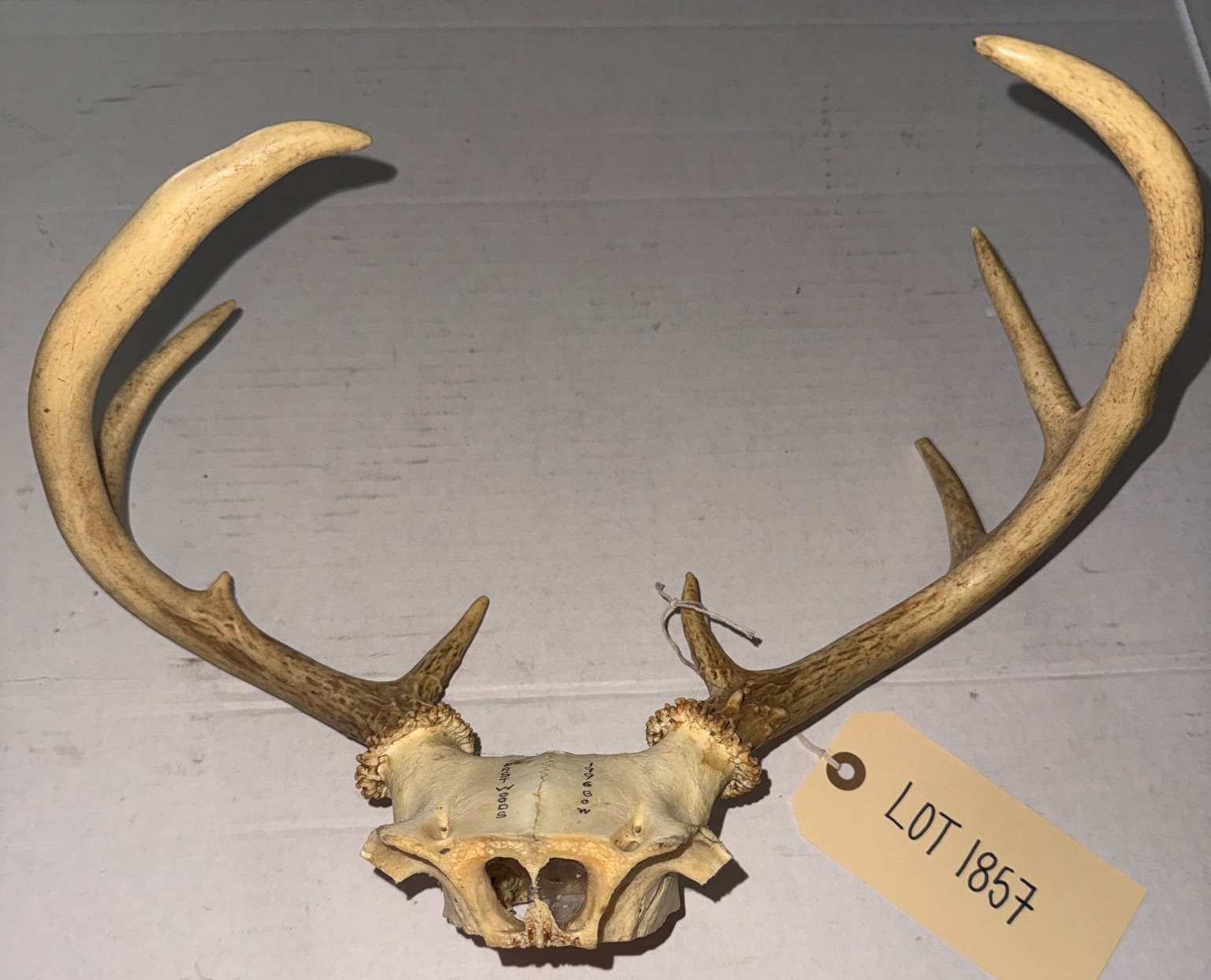 1858 Natural Deer Antlers With Partial Skull Bone, 14?