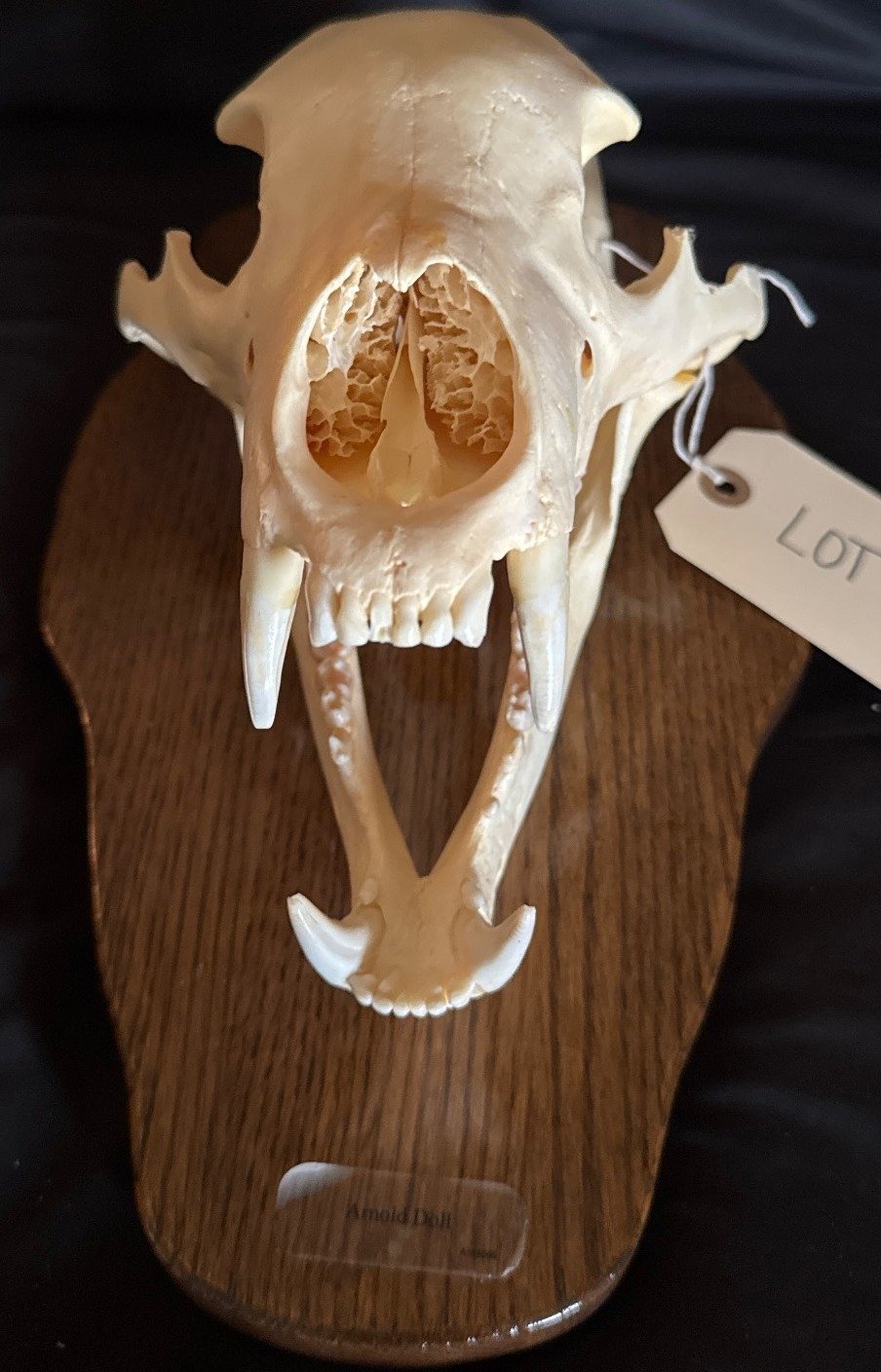 1868 Mounted Cougar Skull on Wood Plaque With Engraved Plate
