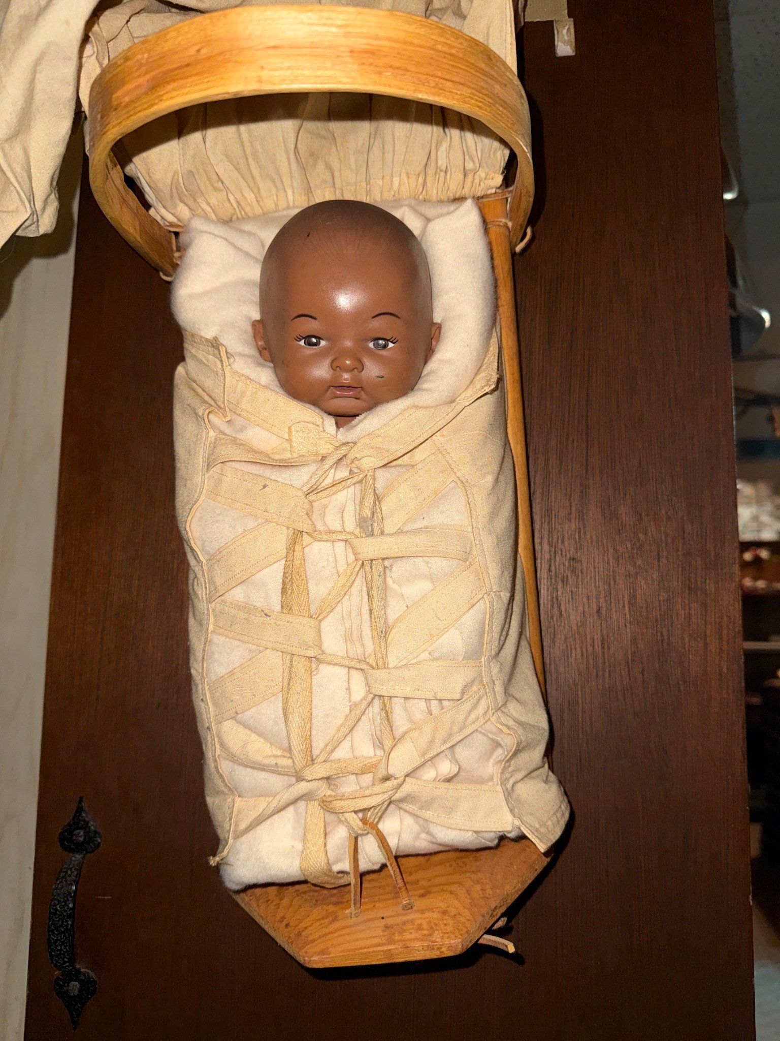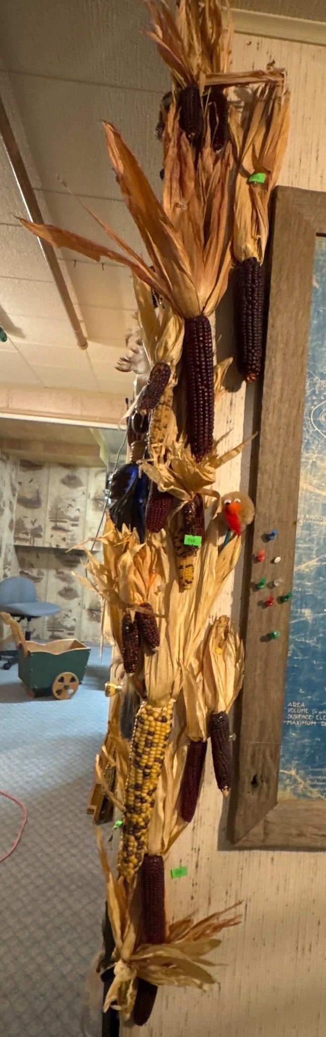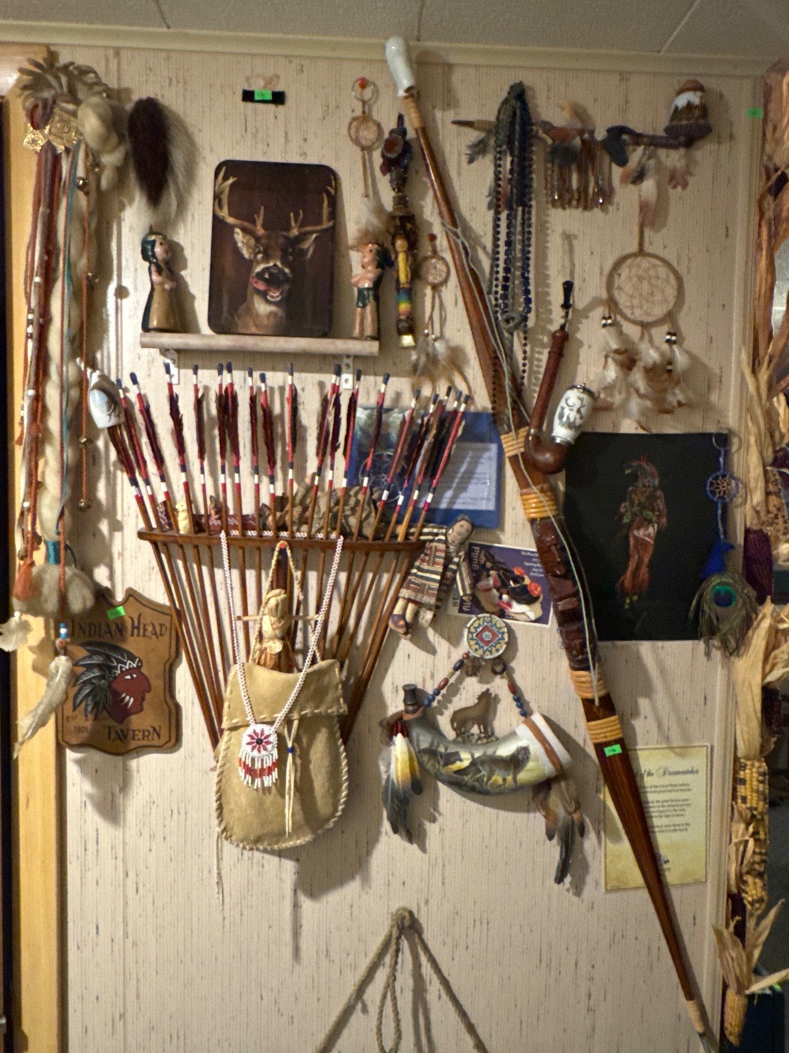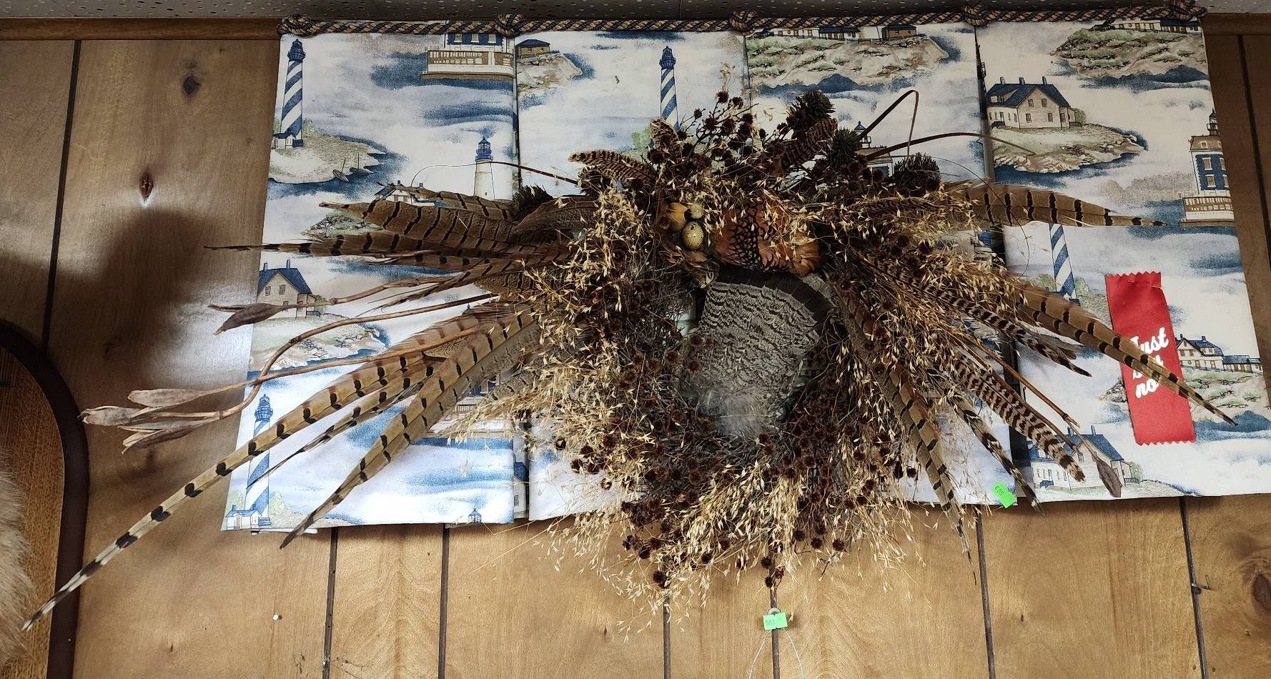 1869 Taxidermy Deer Antlers Mounted on Plaque with Feathered Mask