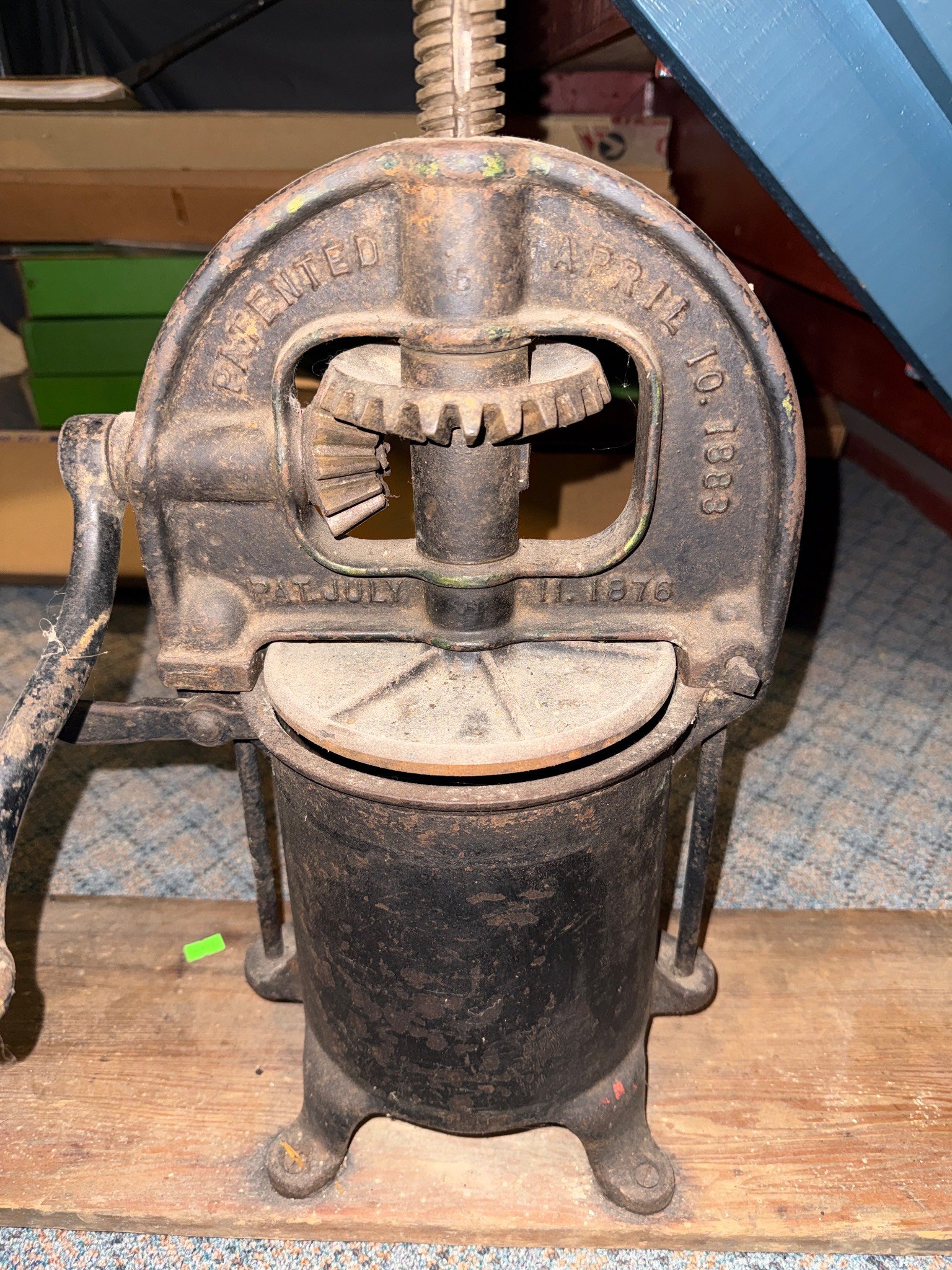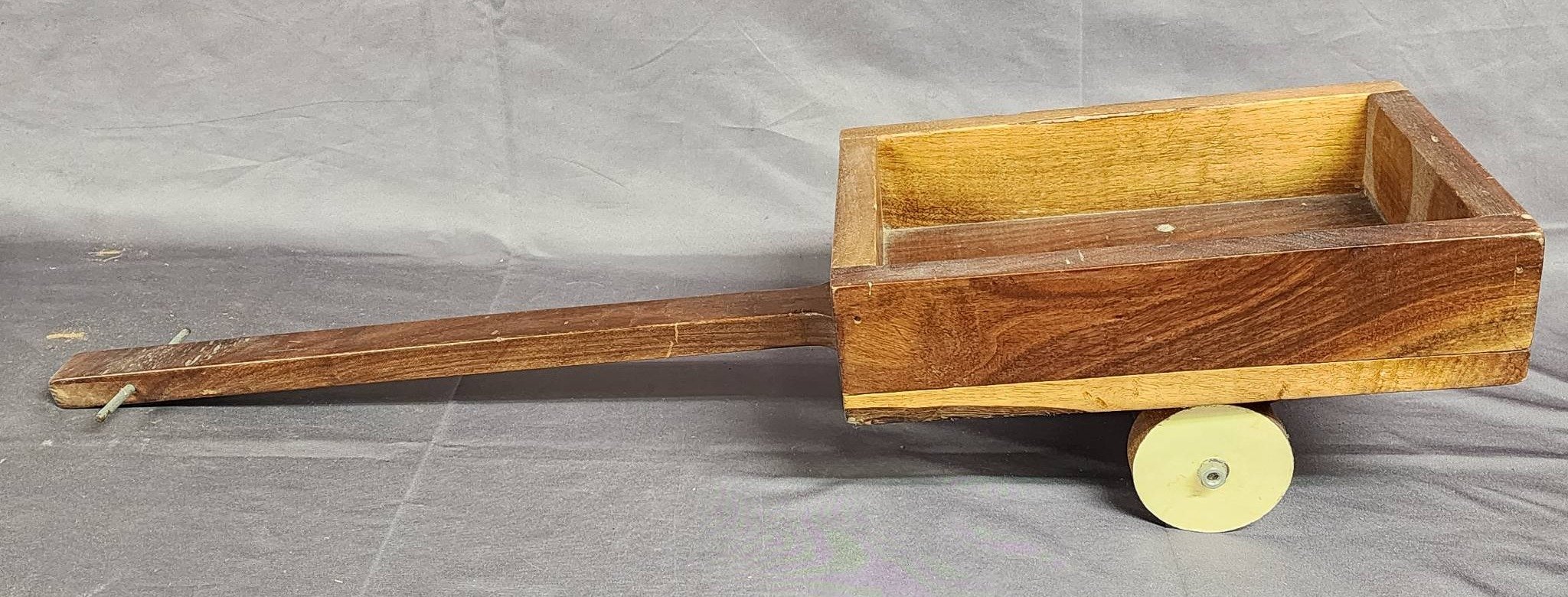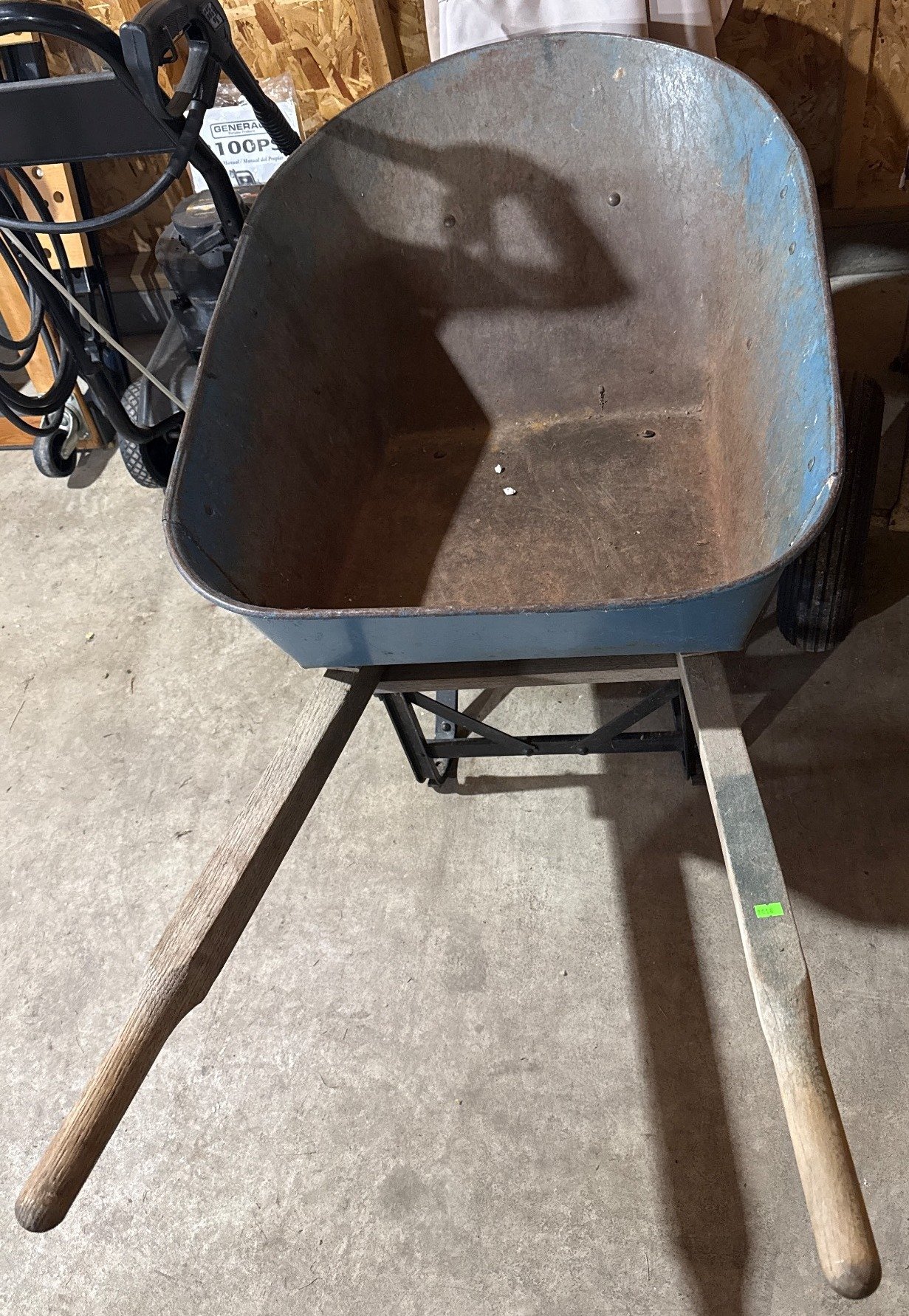 2016 Metal Wheelbarrow With Blue Basin and Wood Handles