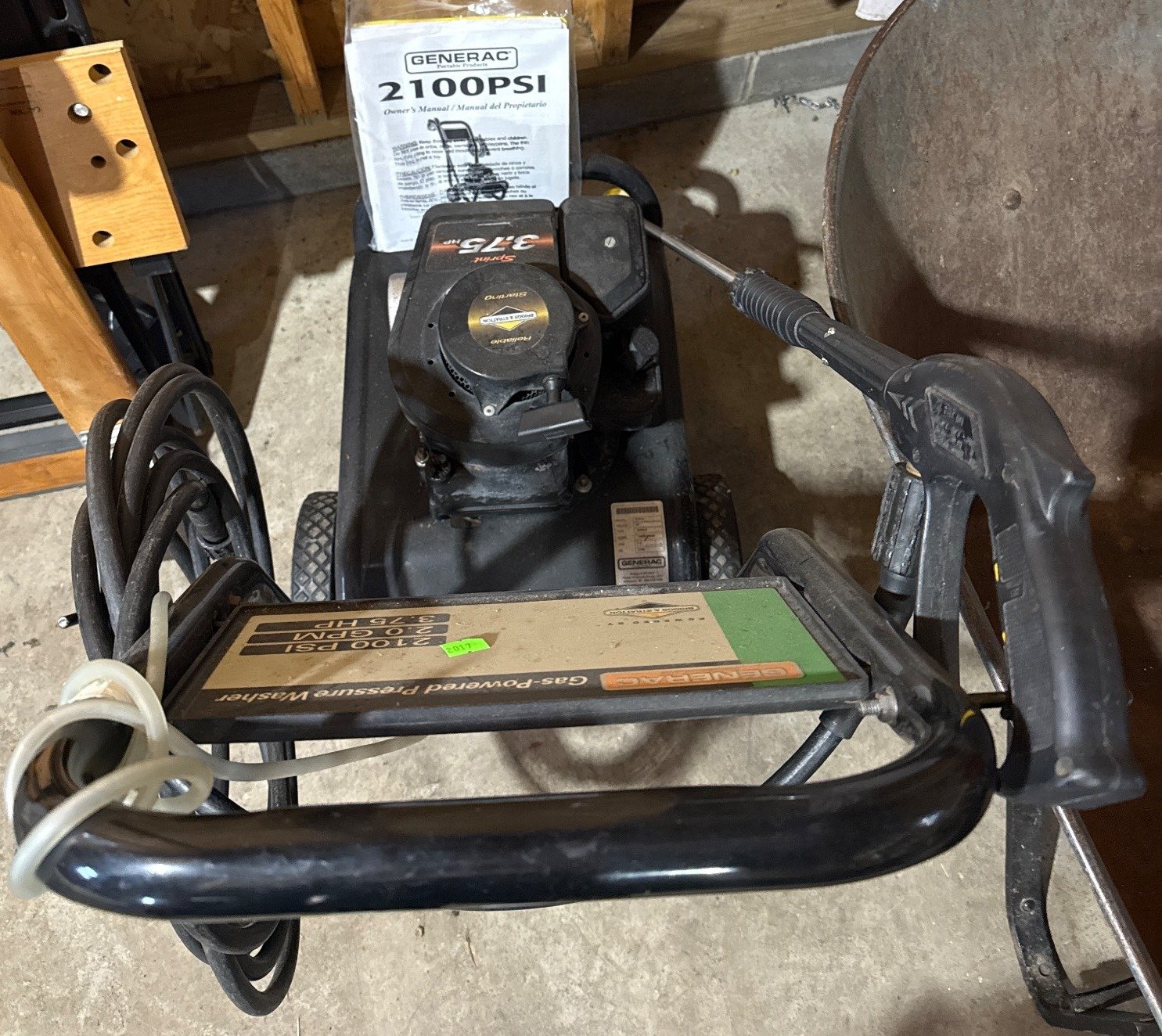 2017 Generac Gas-Powered Pressure Washer, 2100 PSI, 2.0 GPM, 3.75 HP
