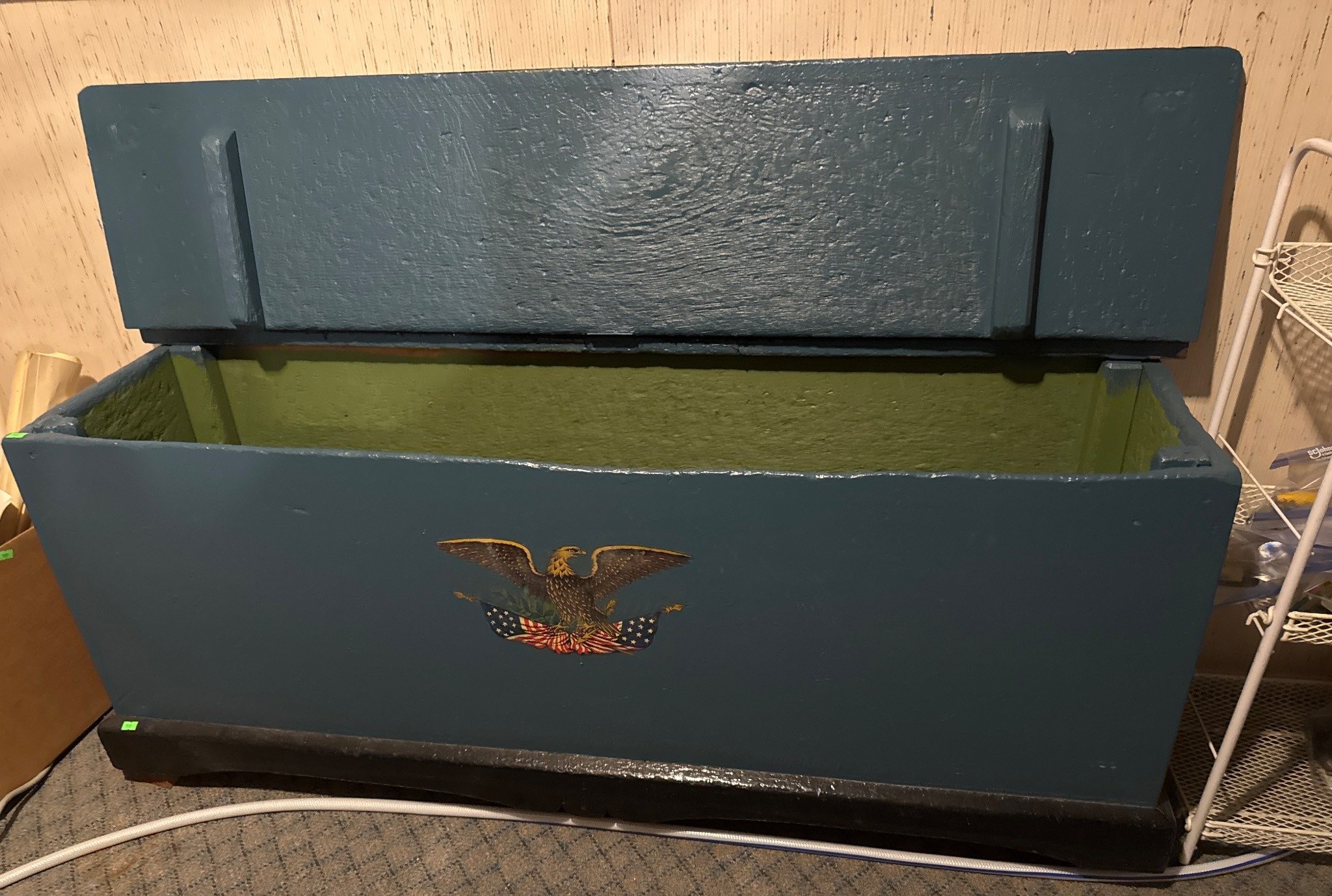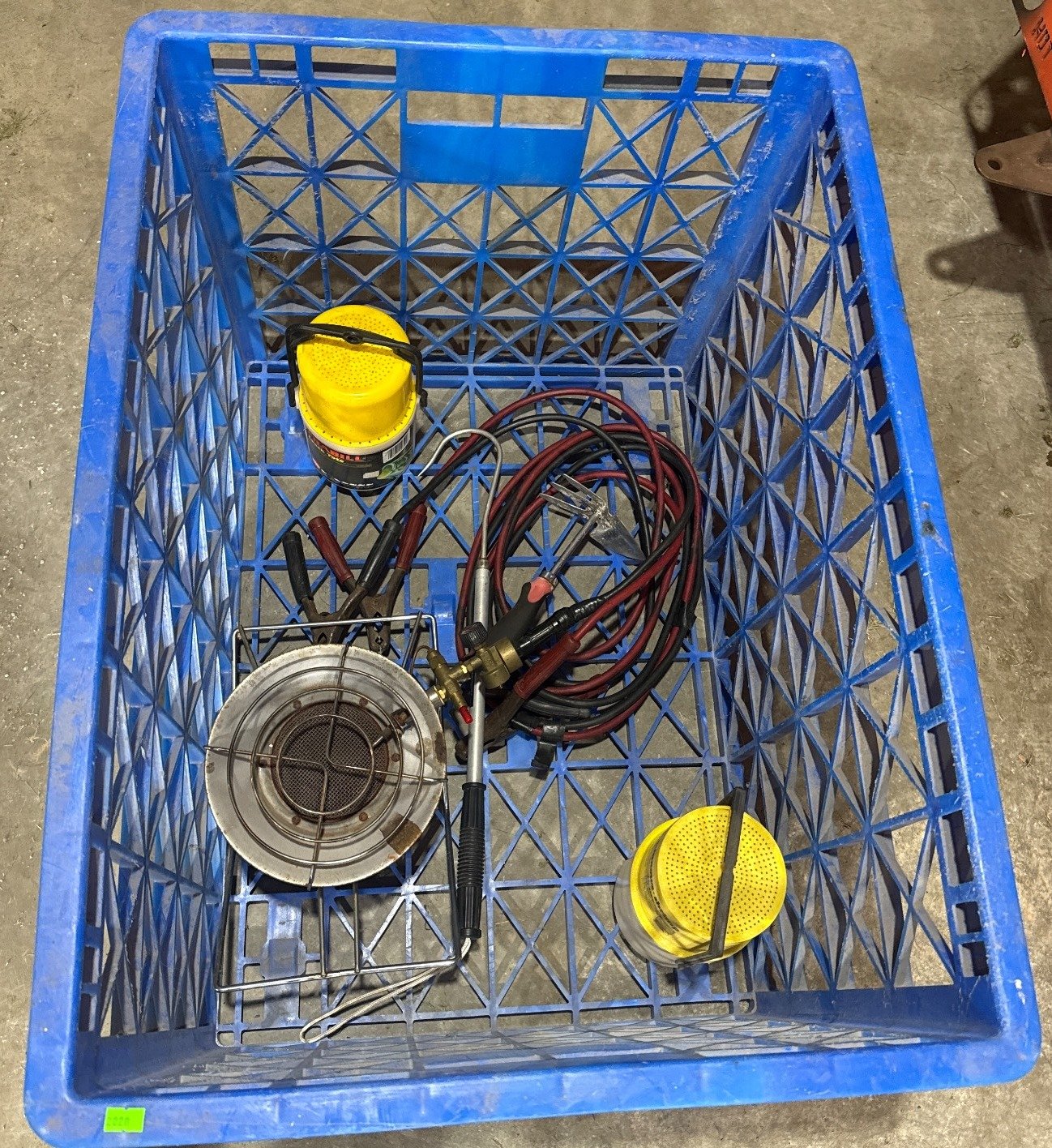 2028 Blue Plastic Crate with Fishing Supplies and Wiring Components