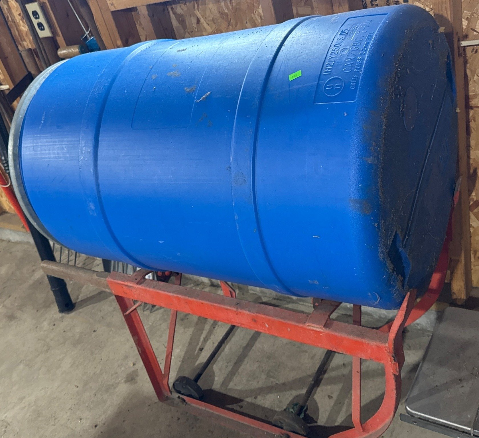 2043 Metal Frame Barrel Cart with Blue Plastic Drum