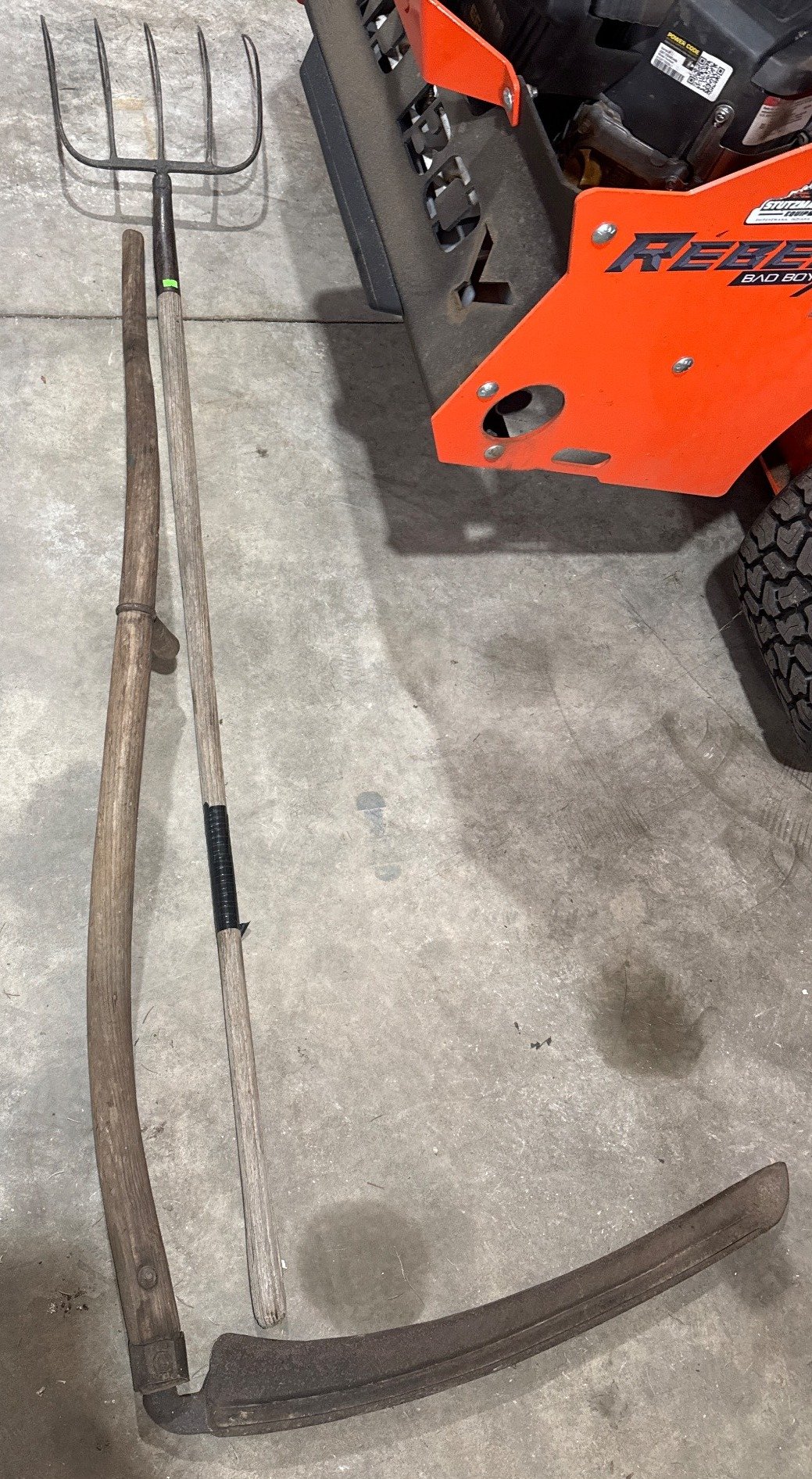 2050 Scythe and 5-Tine Pitchfork with Wood Handles