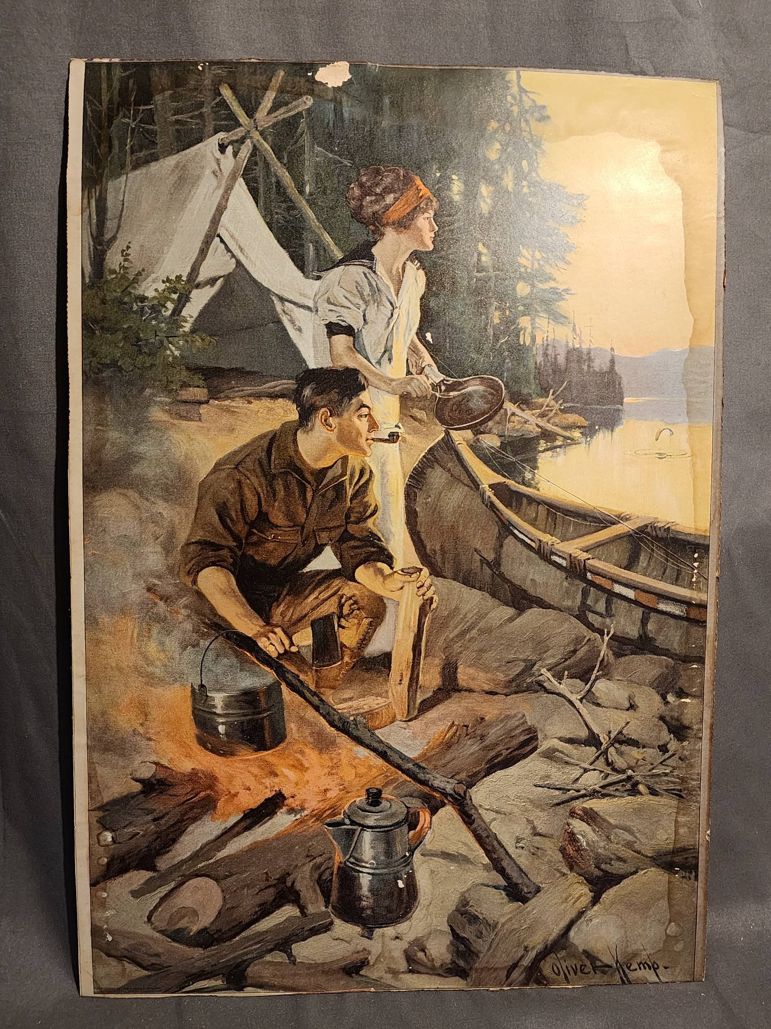 1832 Trout Taxidermy Fish Mount on Bark Edge Plaque, 19?
