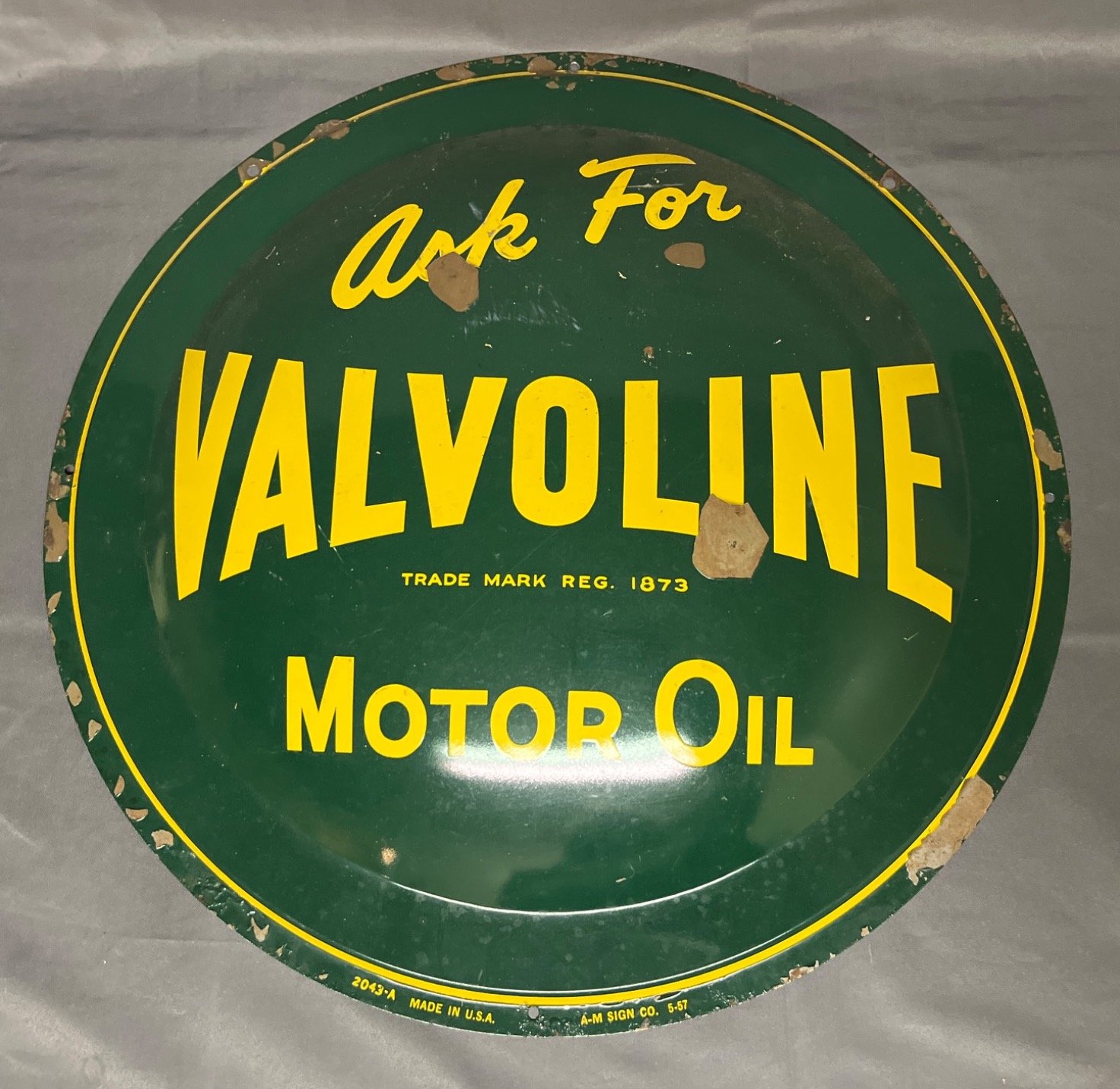 36 Green and Yellow Ask For Valvoline Motor Oil Advertising Sign, 17.5” Diameter