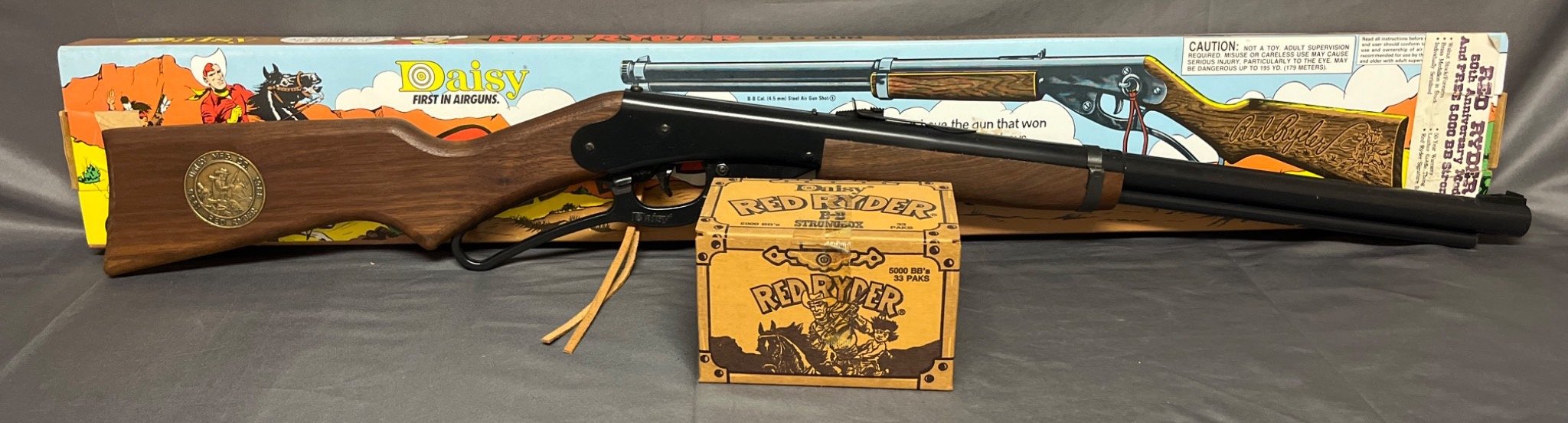 37 Daisy Model 1938B Red Ryder 4.5mm BB Gun with Commemorative Medallion and BB Ammo