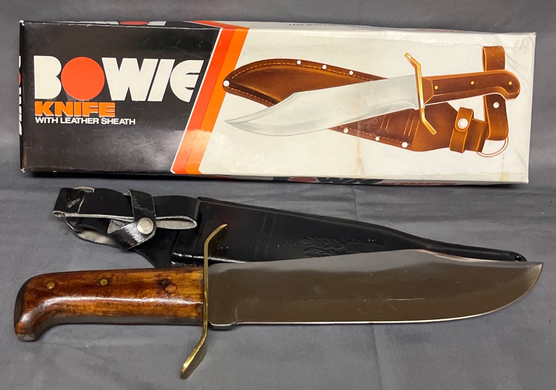 49 Bowie Knife with Leather Sheath and Brass Guard