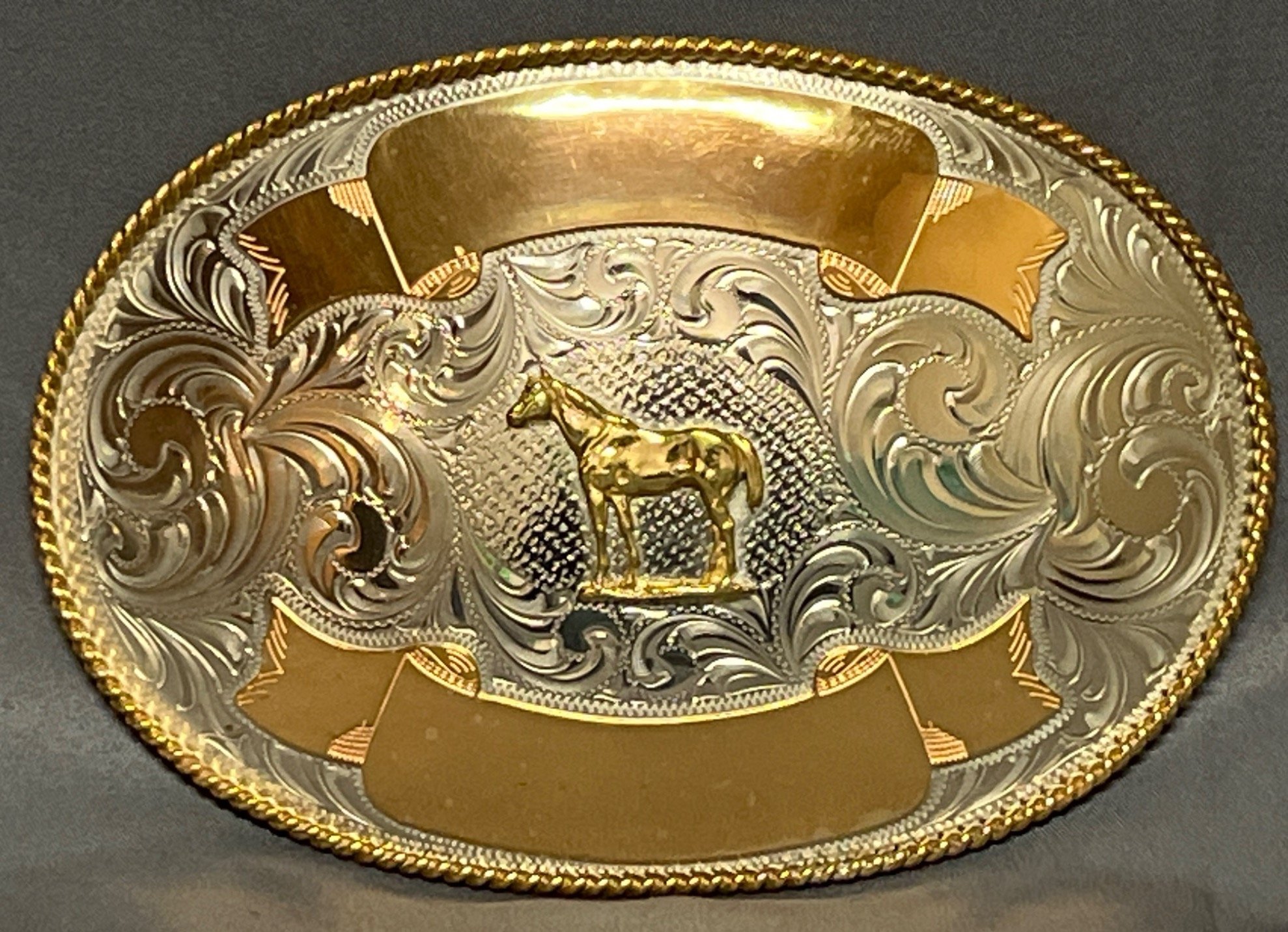 50 Montana Silversmiths Nickel Belt Buckle with Horse Motif