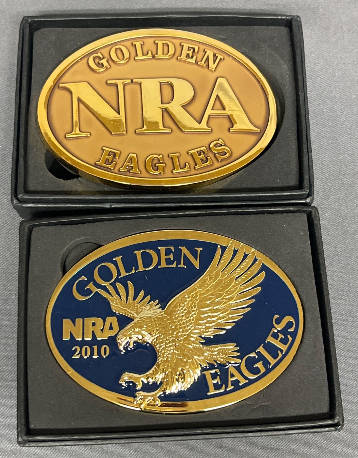 55 2 NRA Golden Eagles 2013 & 2014 Limited-Edition Belt Buckles in Boxes
