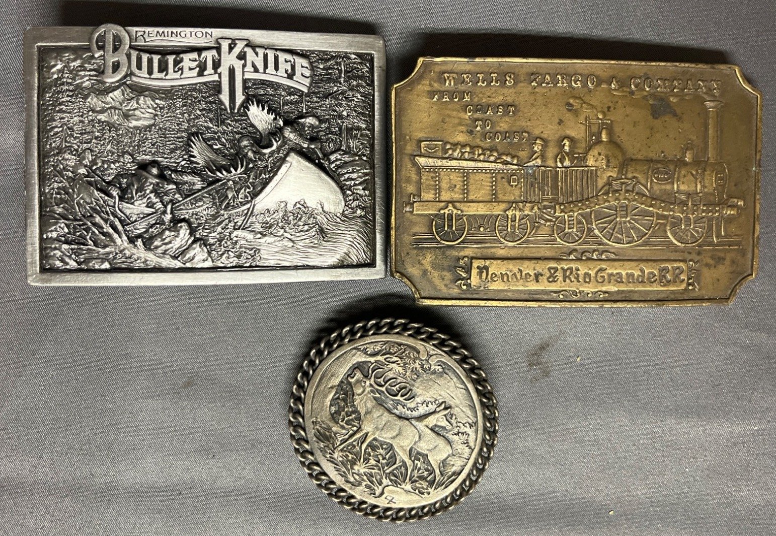 58 3 Distinct Belt Buckles: Limited Edition Remington, Wells Fargo, and Sterling Silver Deer Design