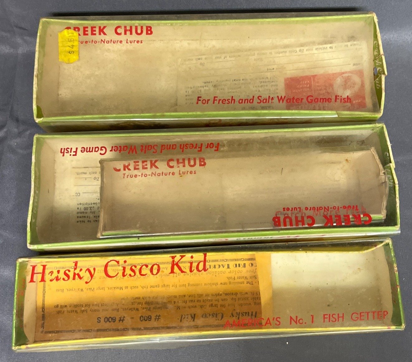 59 3 Creek Chub Bait Co. and Husky Cisco Kid Lure EMPTY Boxes