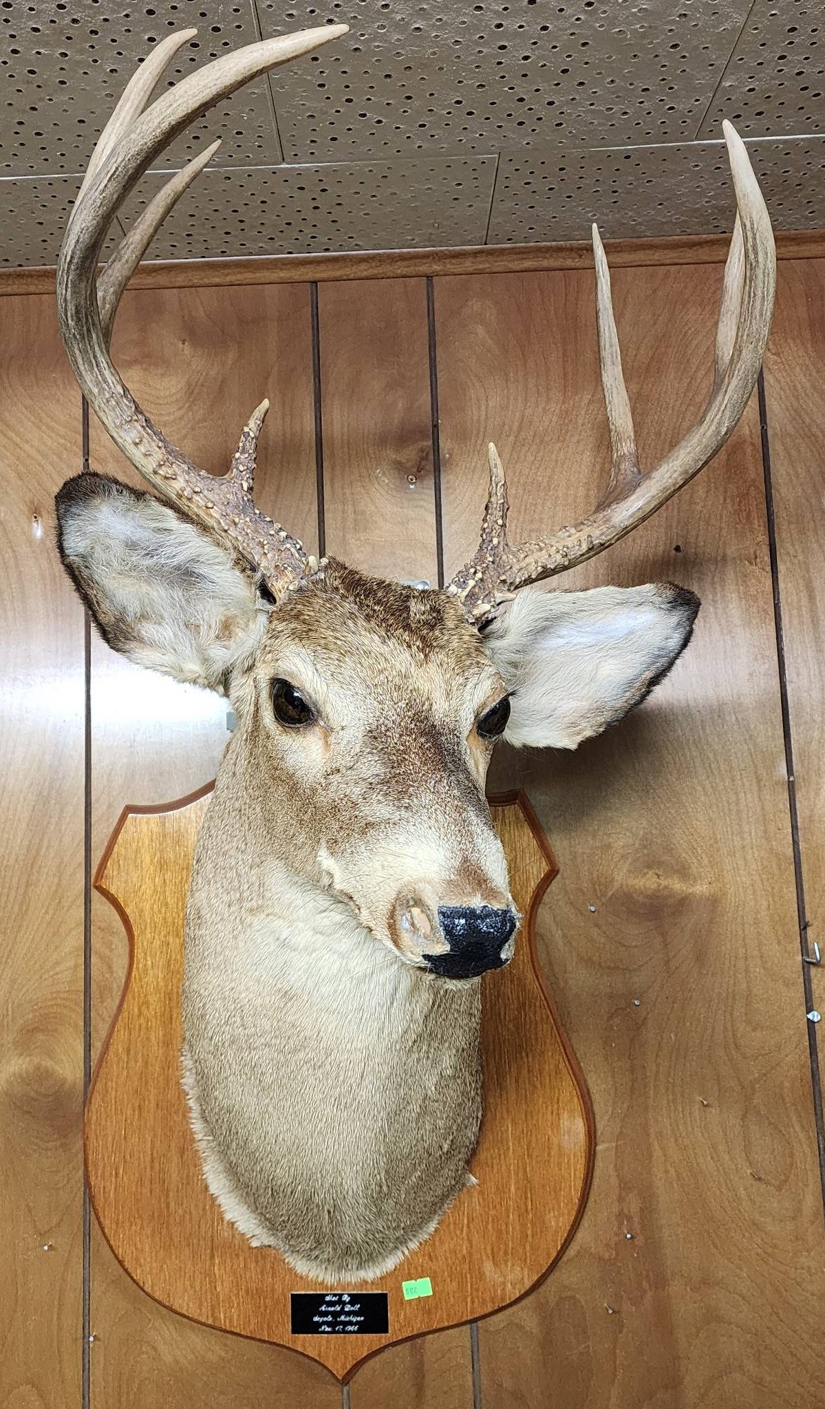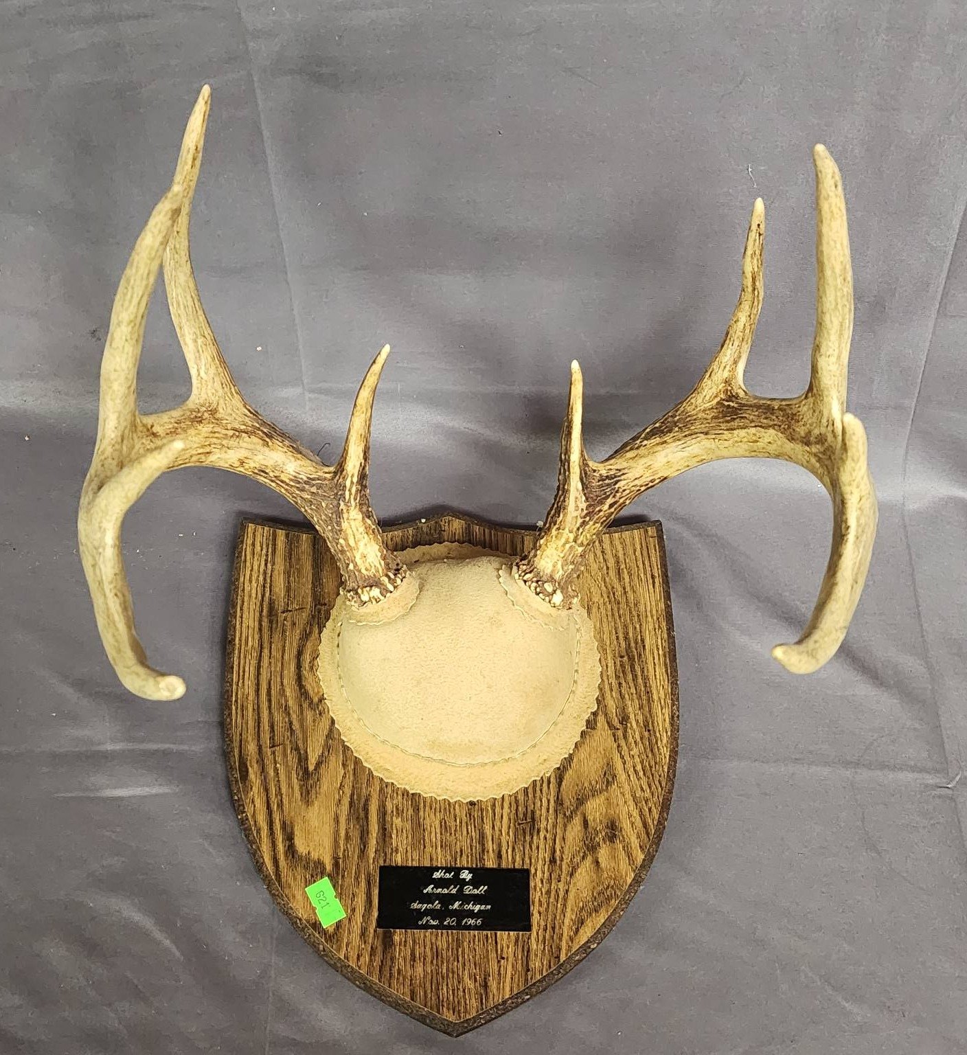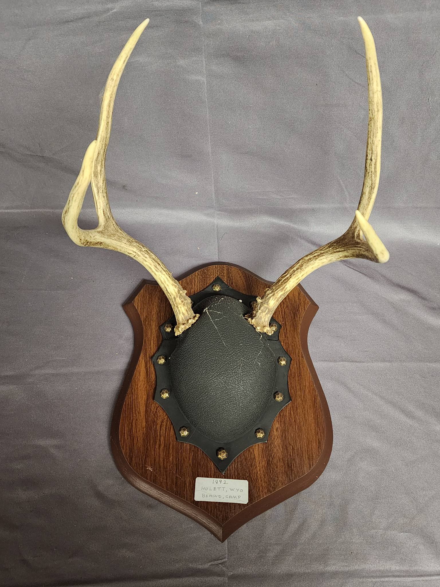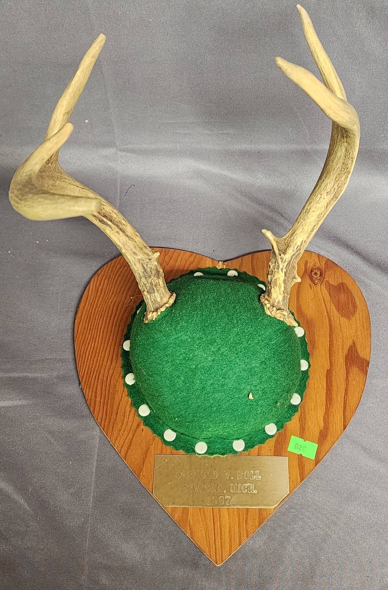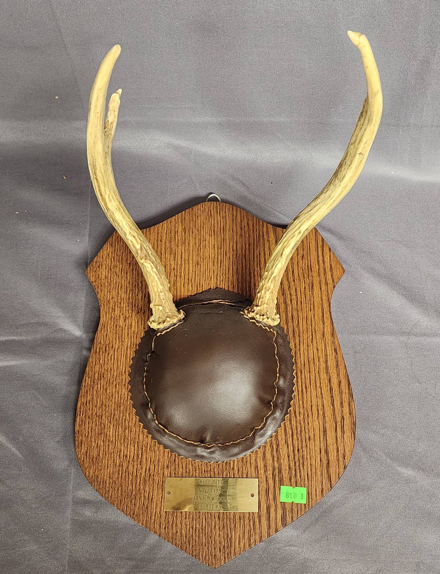 1856 Taxidermy Deer Antlers on Shield Plaque