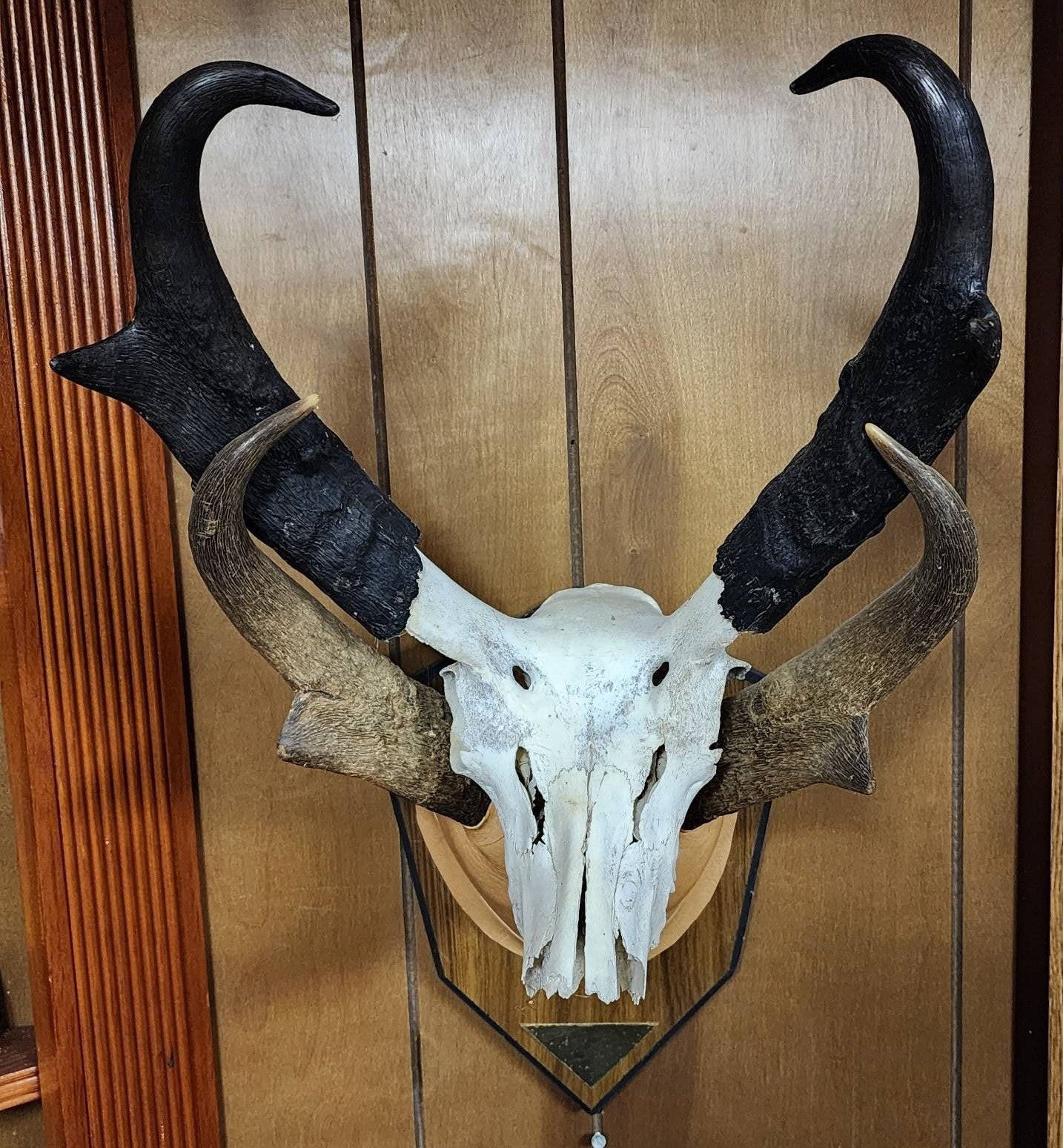 1850 Deer Skull and Antler Mount on Carved Plaque