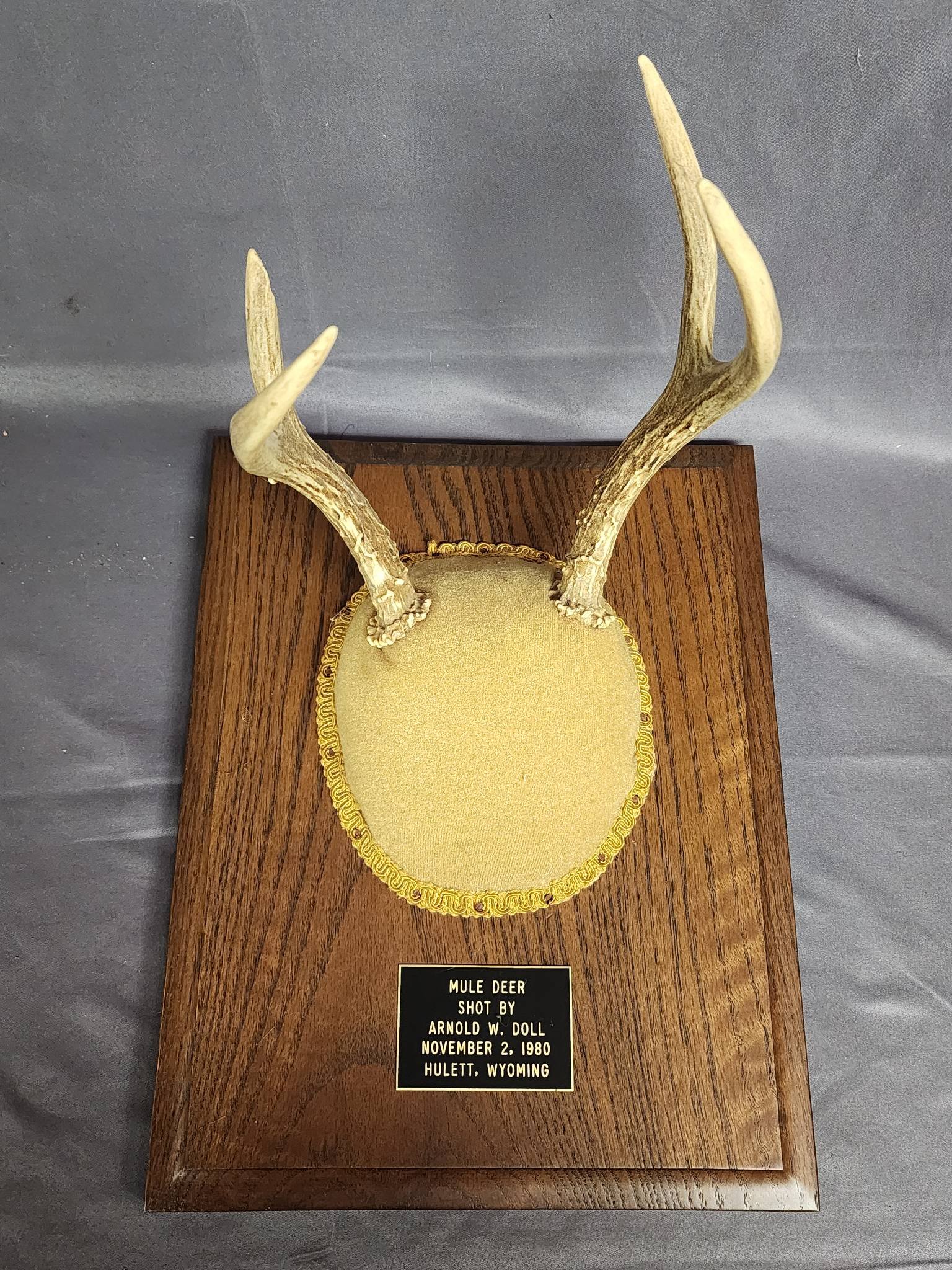 1837 Mounted Deer Antlers With Plaque and Engraved Plate, 17?