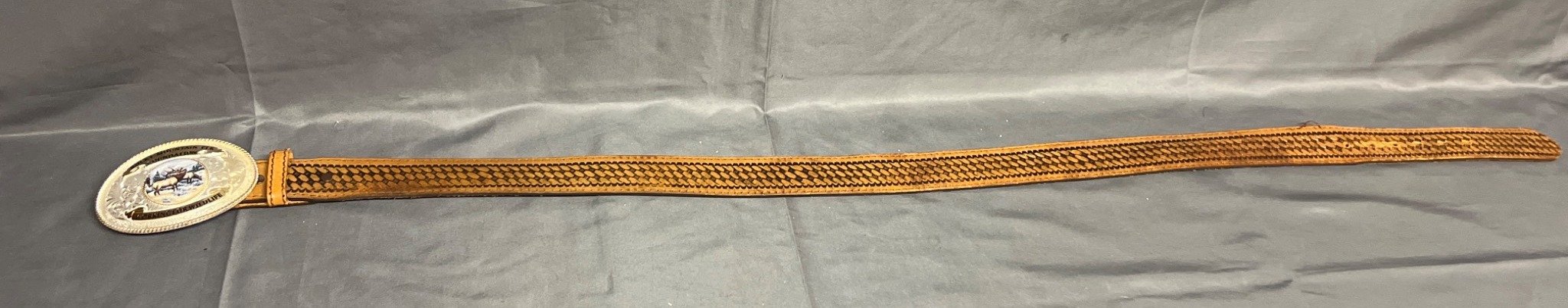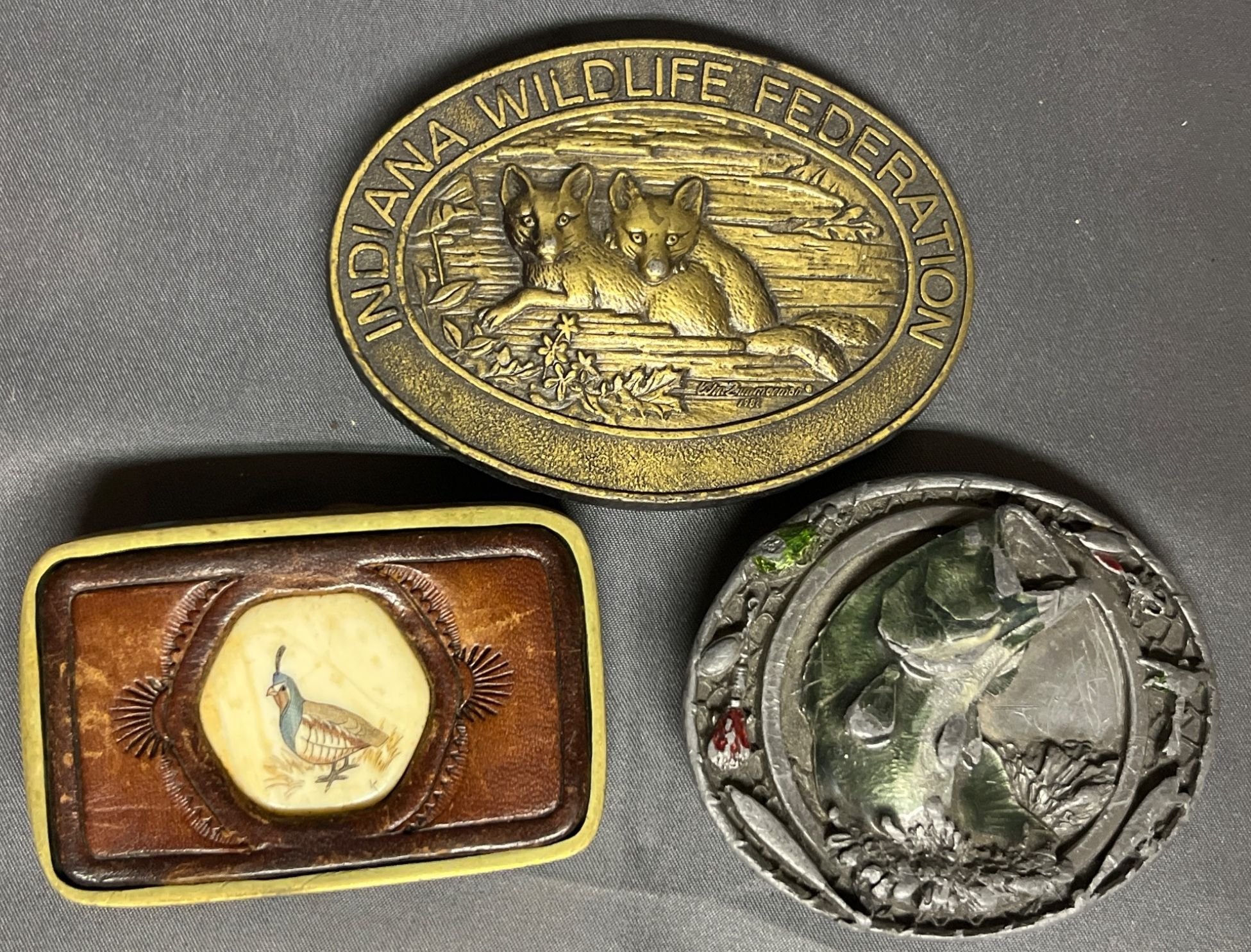63 3 Wildlife-Themed Belt Buckles in Brass, Leather, and Pewter