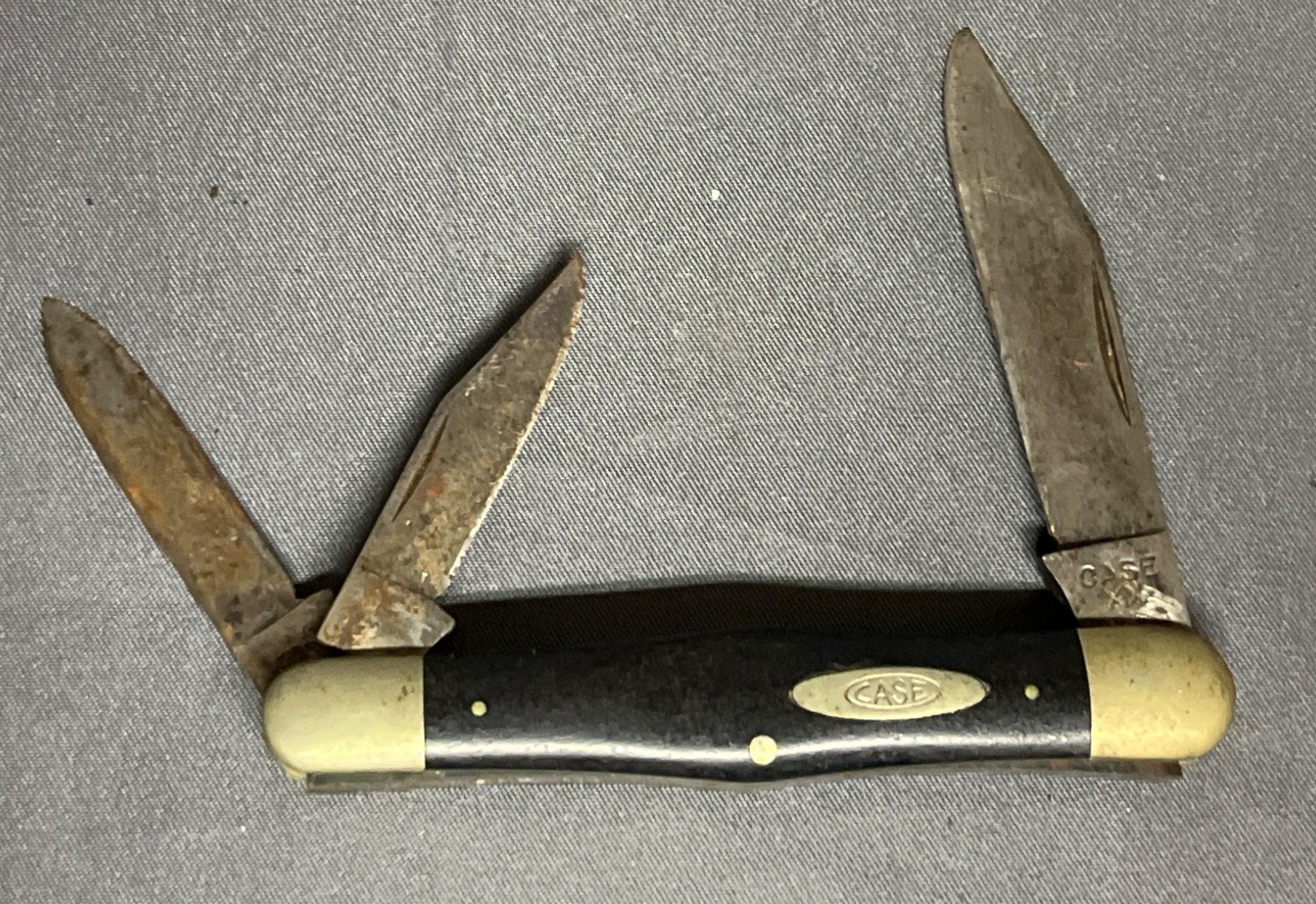 65 Case XX 3-Blade Pocket Knife with Black Handle and Brass Bolsters