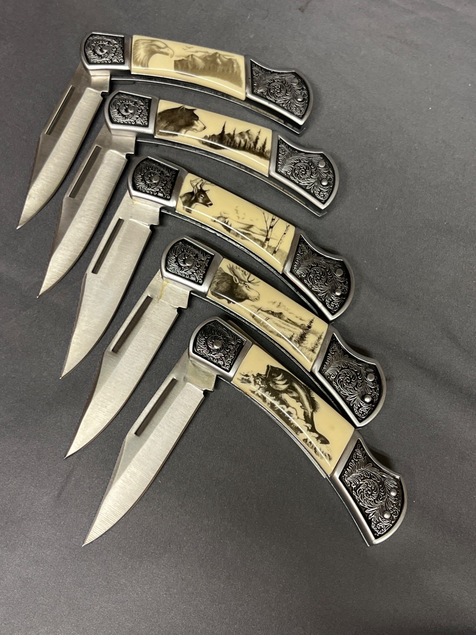 69 5 Folding Pocket Knives with Wildlife-Themed Handles and Stainless Steel Blades