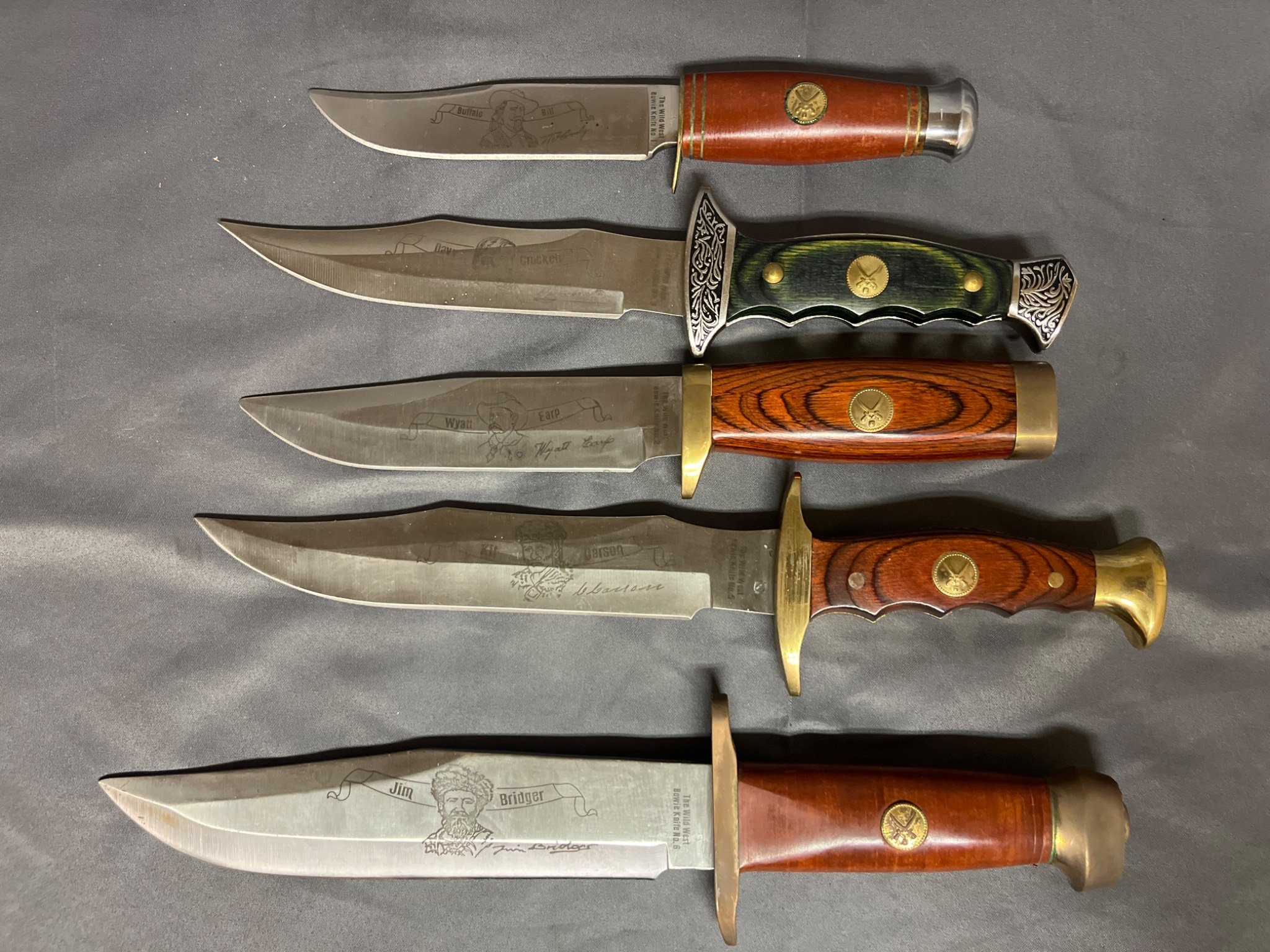 76 5 Wild West-Themed Stainless Steel Bowie Knives (9”-12 3/4”)