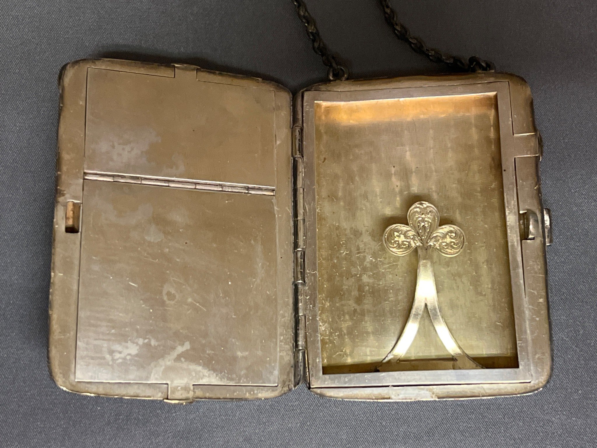85 Metal Cigarette Case with Chain and Interior Clip
