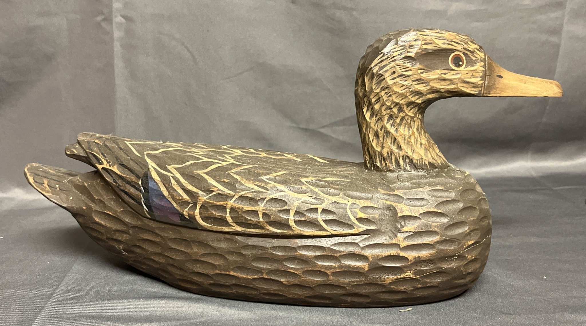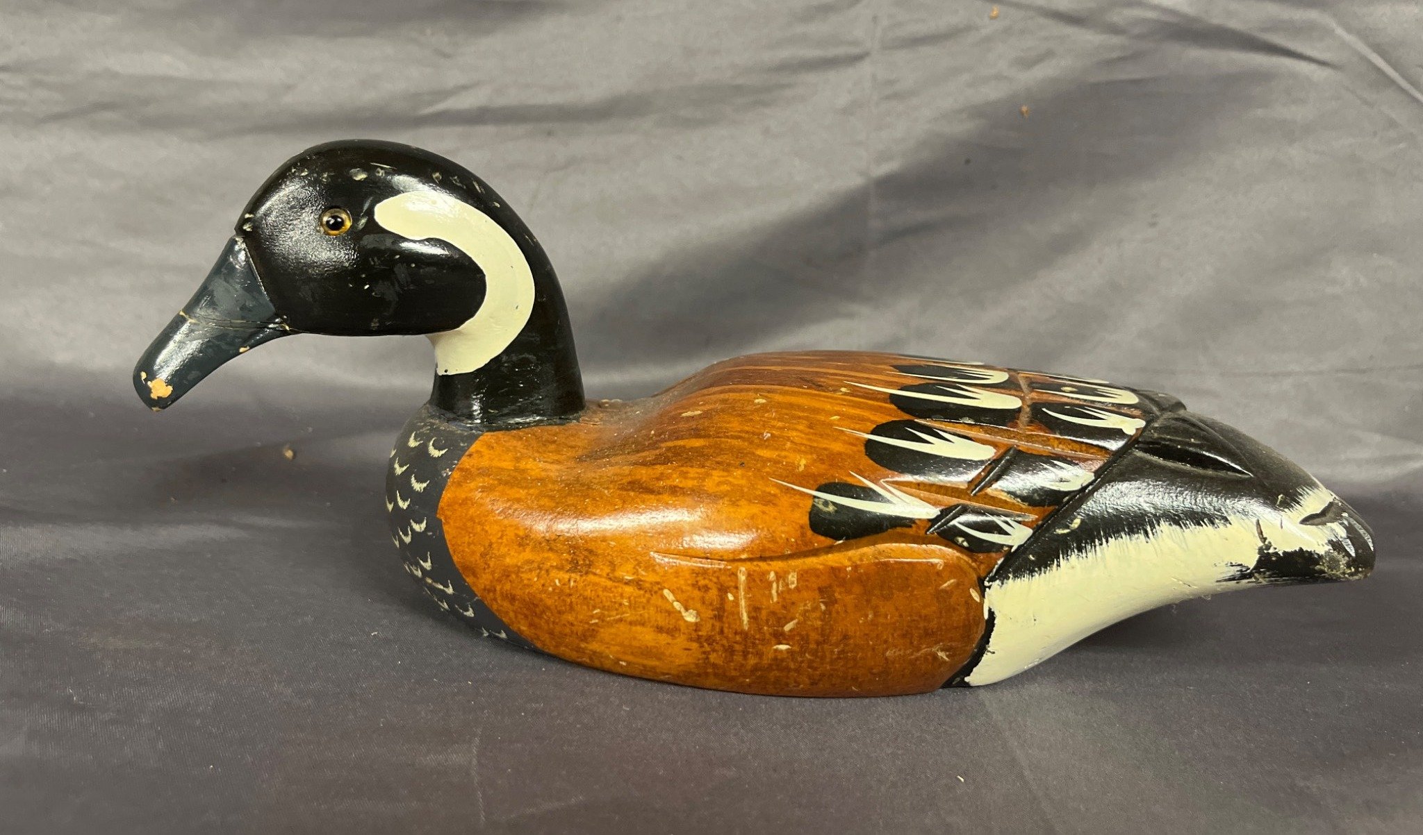 52 Hand-Carved Duck Decoy with Painted Details and Weighted Bottom