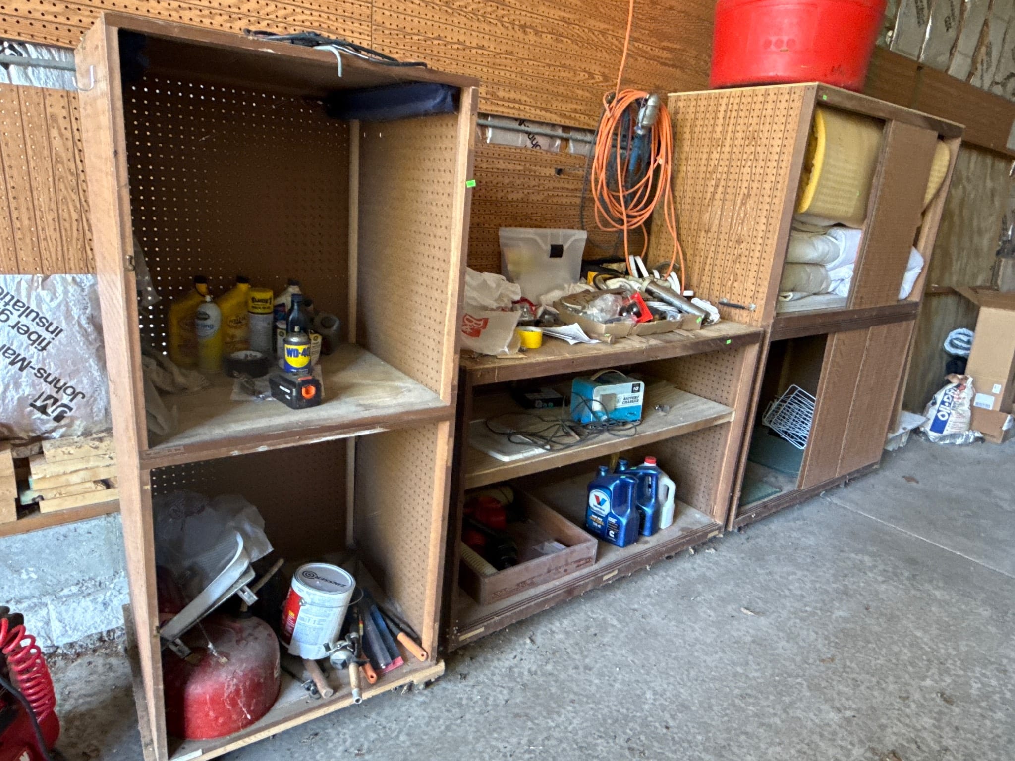 1039 3 Storage Cabinets with Pegboard Panels and Shelving (Contents NOT Included), 54x26x73?, 54x26x38?, 27x26x64.5?