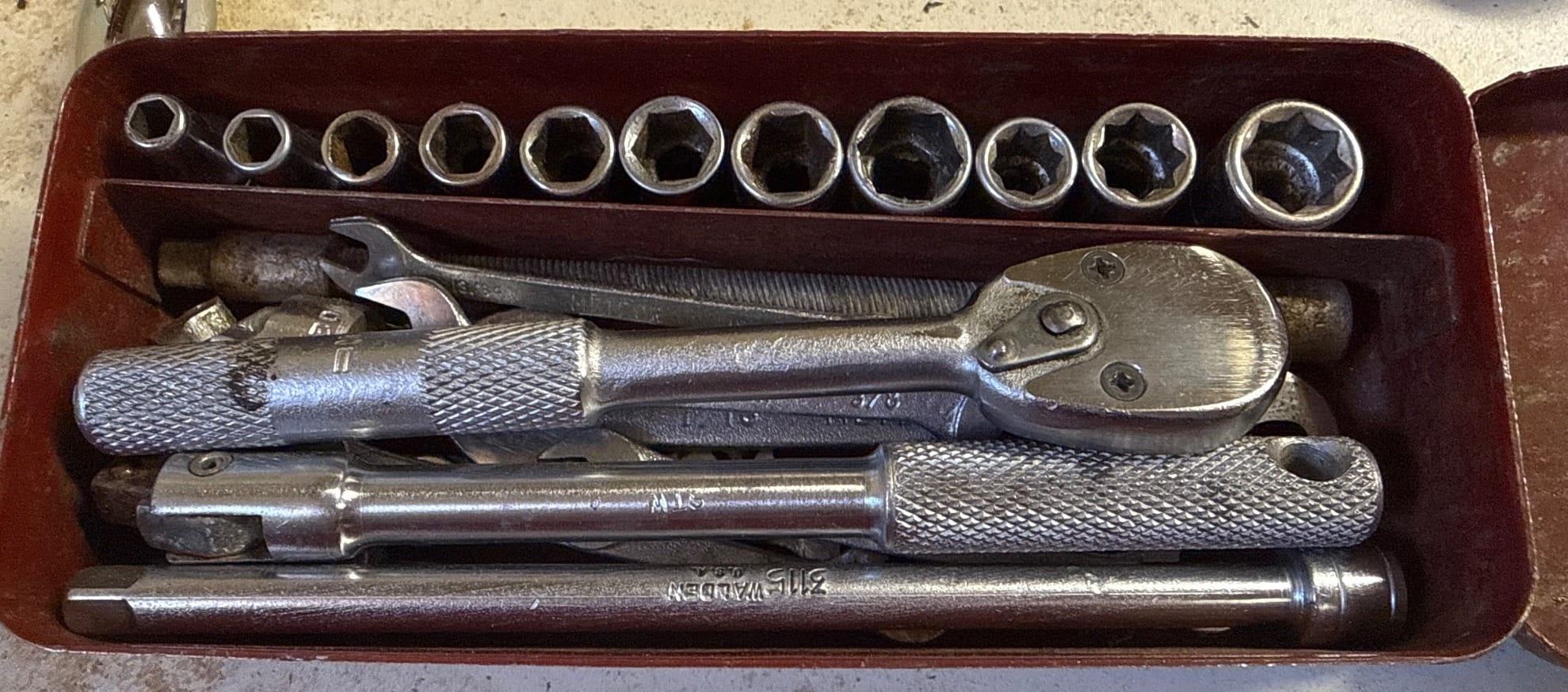 135 Snap-on Tools Ratchet and Socket Set in Stephen Walden Inc. Metal Case